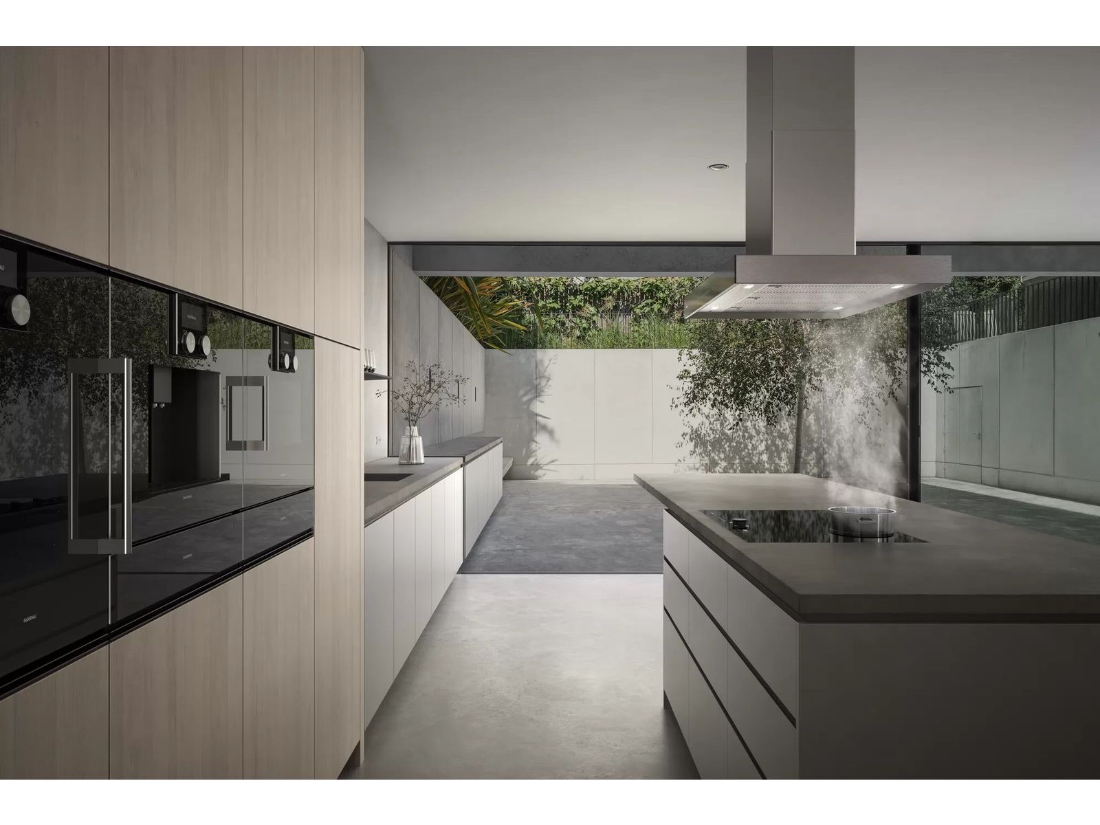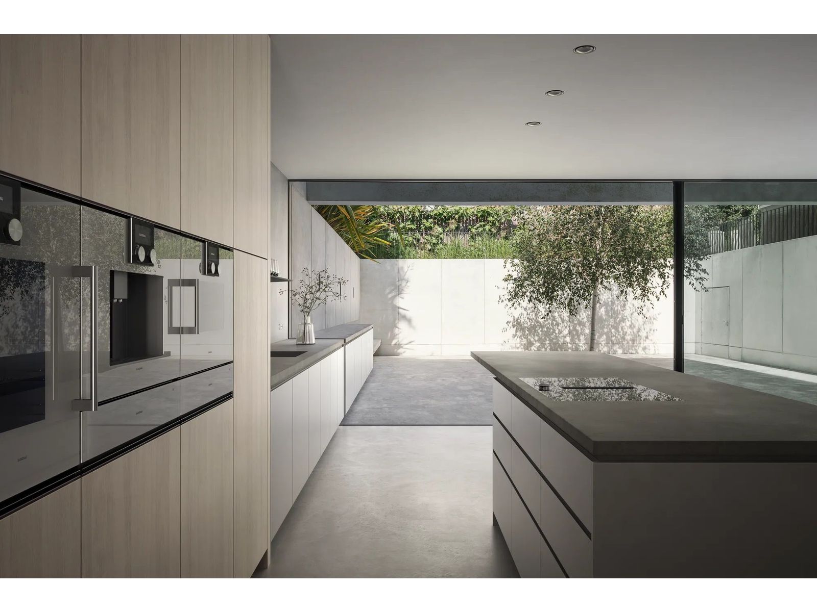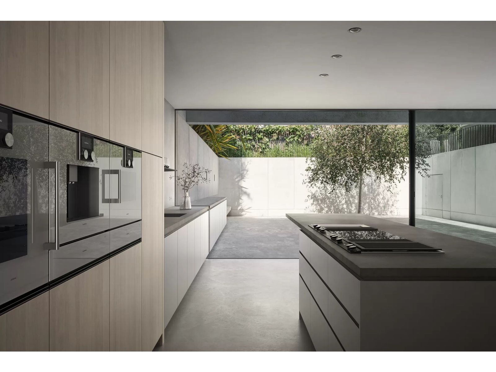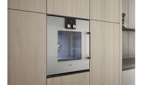 Het karakteristieke uiterlijk van Gaggenau, vlak ingewerkt, nodigt uit om aan de handgreep te trekken en de deur de volle 110 °C te openen.
