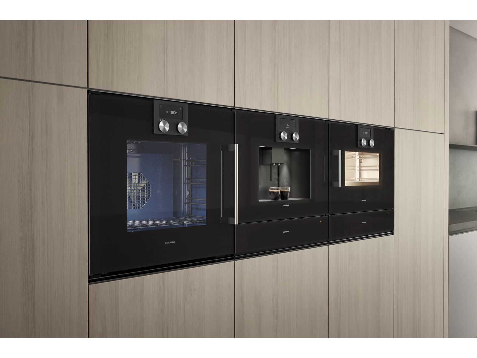 Het karakteristieke uiterlijk van Gaggenau, vlak ingewerkt, nodigt uit om aan de handgreep te trekken en de deur de volle 110 °C te openen.