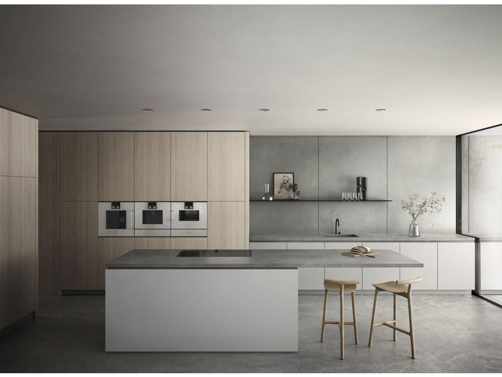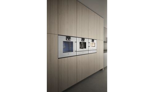 Het karakteristieke uiterlijk van Gaggenau, vlak ingewerkt, nodigt uit om aan de handgreep te trekken en de deur de volle 110 °C te openen.