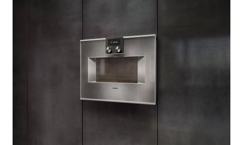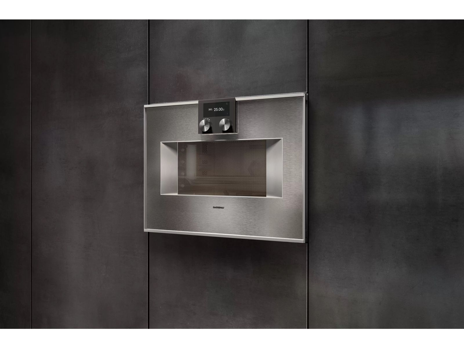 Het karakteristieke uiterlijk van Gaggenau wordt gekenmerkt door de volledig glazen deur die iets uitsteekt. Druk op het TFT-Touchdisplay om de greeploze deur de complete 180 °C te openen.