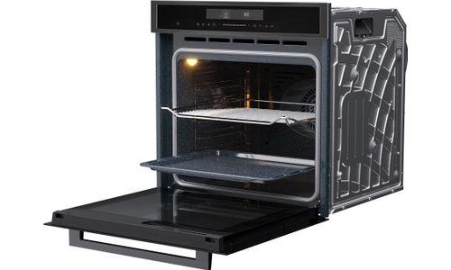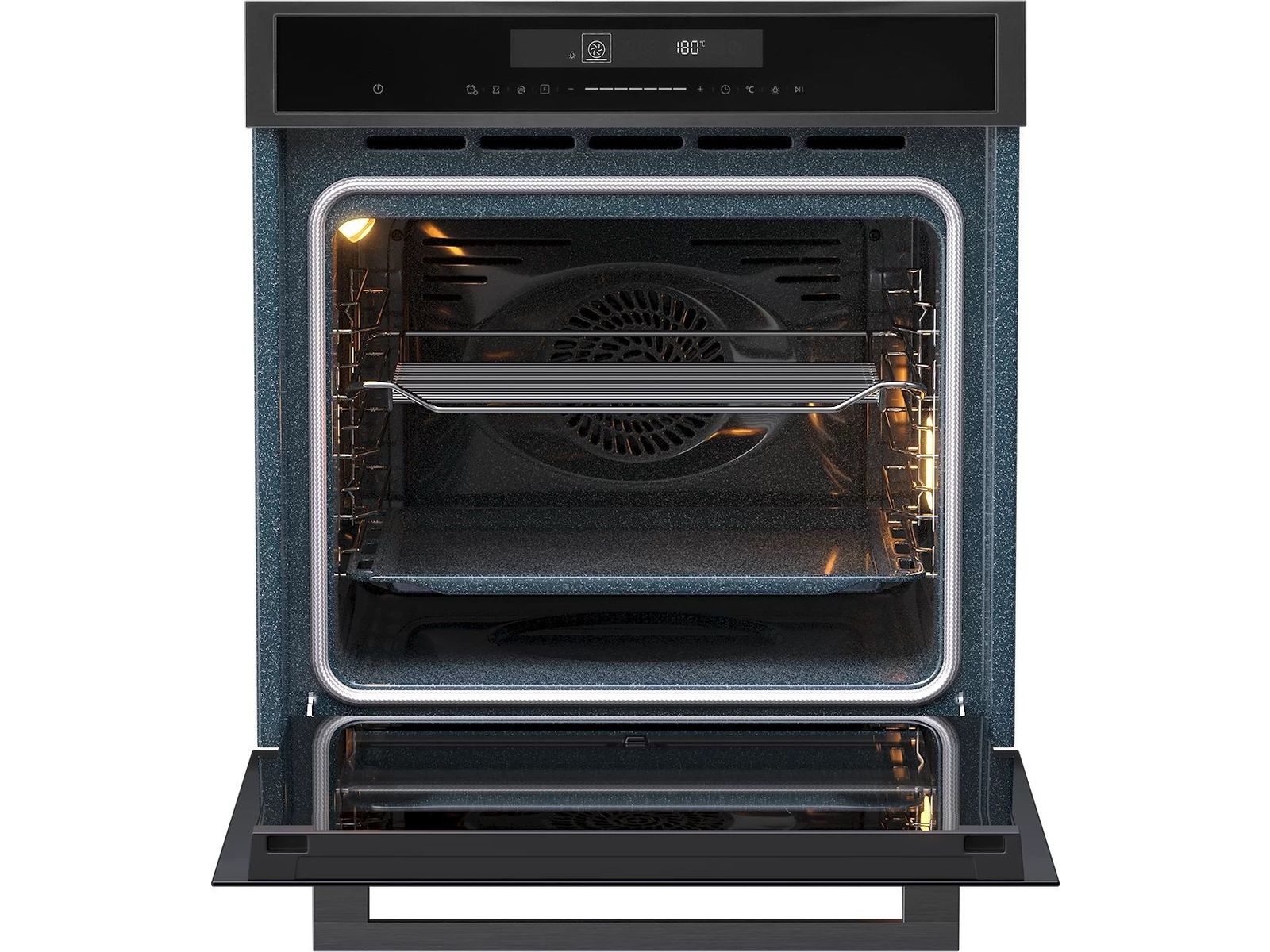 De OP670Ti heeft een inhoud van 72 liter en is voorzien van zijrekjes met 5 insteekniveaus. Het multifunctionele ovensysteem met turbo-hetelucht heeft een temperatuurbereik van 30 tot 250 ºC. Je bedient de oven met touch control en een handige slider. Op het led-display worden functie, tijd en temperatuur weergegeven. Om de bakresultaten goed in de gaten te houden is de oven voorzien van dubbele ovenverlichting.