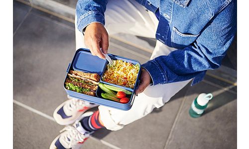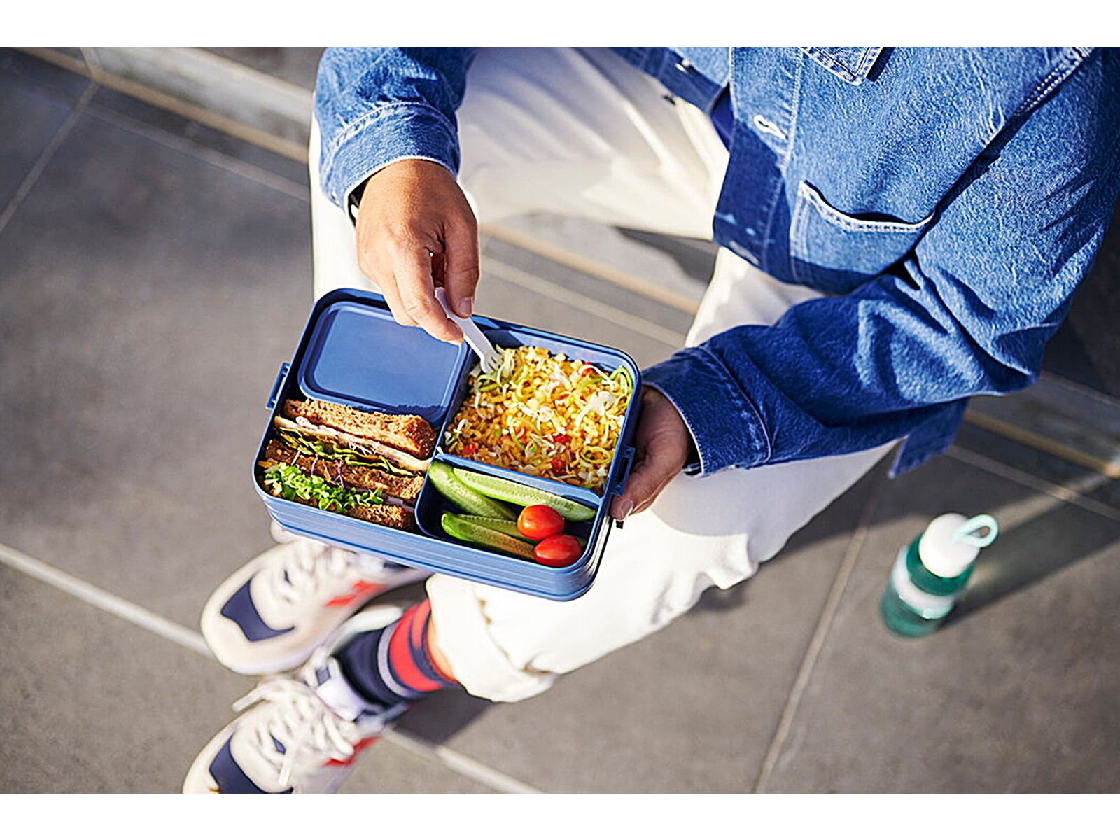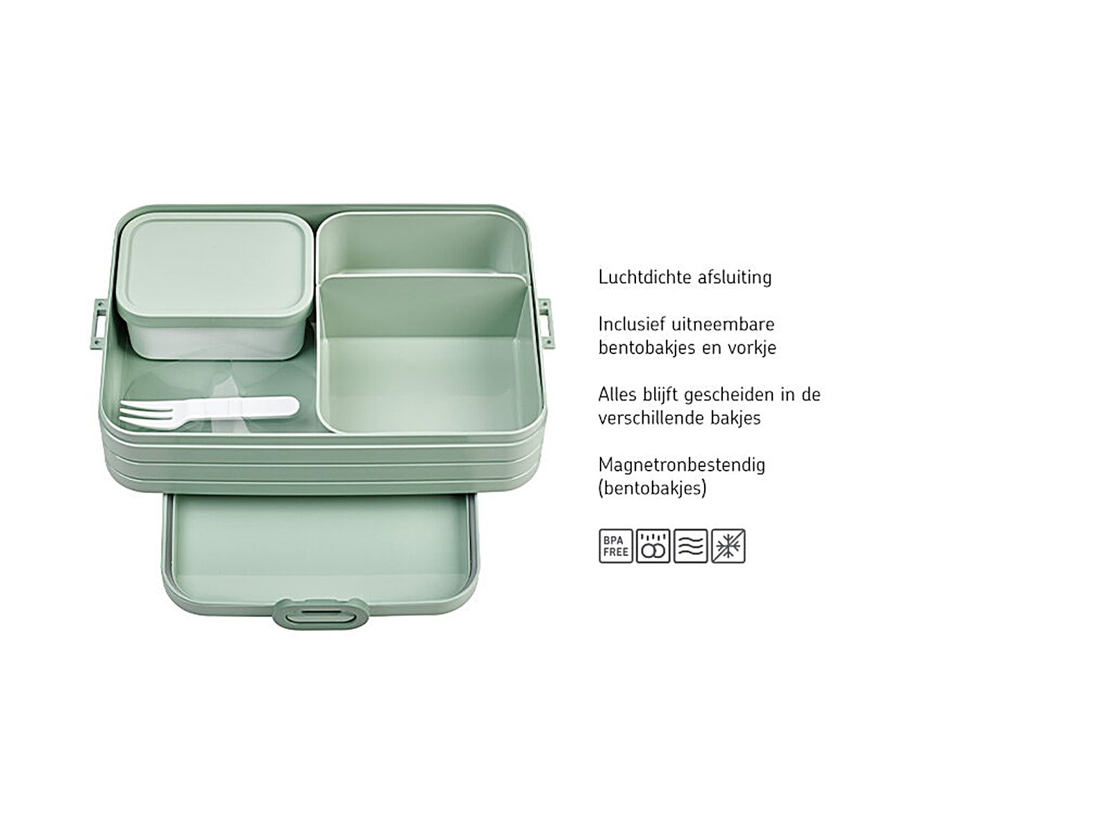 Lunchbox Take a Break large in de kleur Nordic sage. Deze grote groene broodtrommel van Mepal is geschikt voor maximaal 8 boterhammen. Hij is voorzien van een afdichtring die de inhoud altijd lekker vers houdt en een divider, waarmee etenswaren eenvoudig van elkaar kunnen worden gescheiden. Neem vanaf nu dus uw eigen lunch mee in deze broodtrommel. Dat is niet alleen goedkoop, maar ook lekker en gezond!