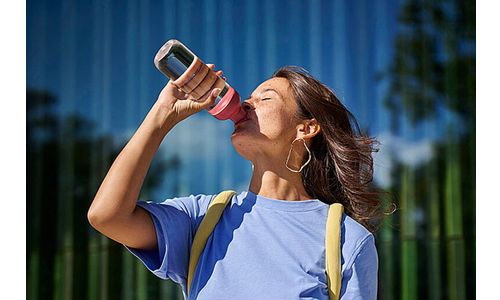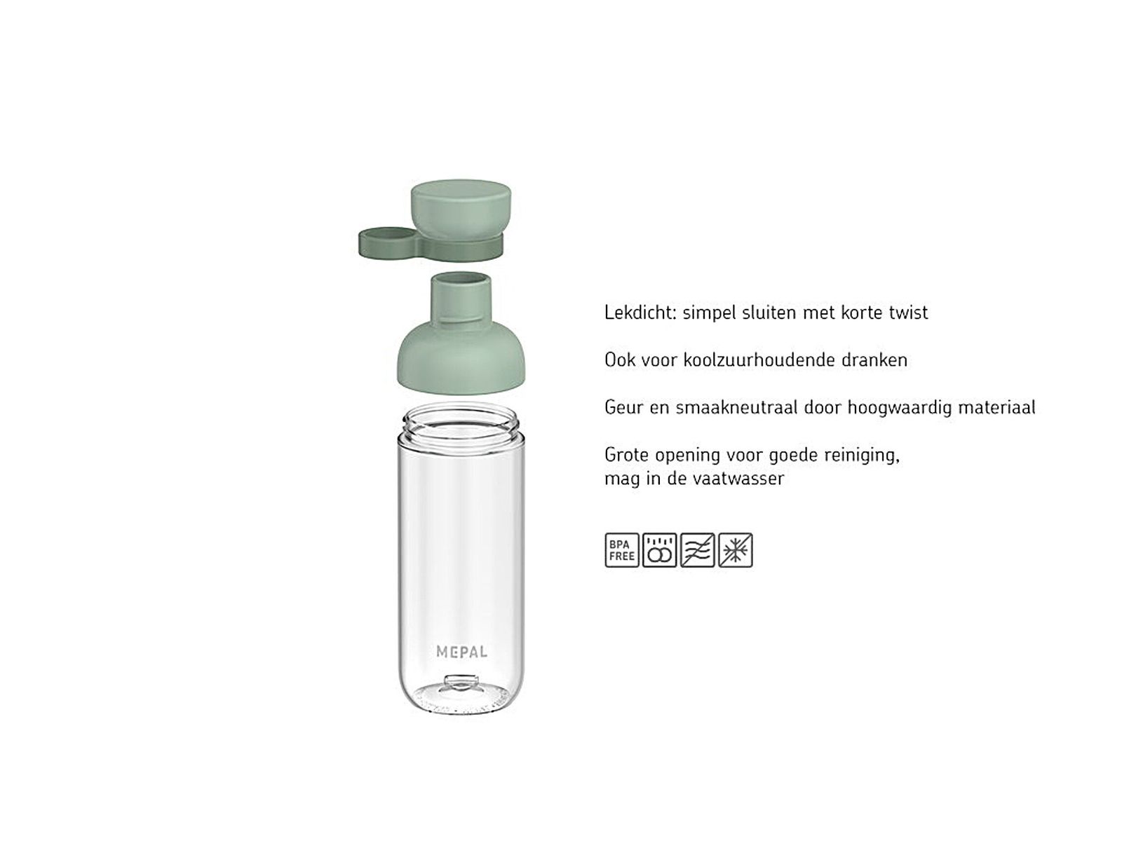 Nog even de gevulde waterfles Mepal Vita in je tas en je bent klaar om te gaan! De lekdichte waterfles beschikt over twee openingen: één om comfortabel uit te drinken en een tweede (grote) opening om de fles gemakkelijk schoon te maken en/of te voorzien van je favoriete fruit of kruid. Door de handige lus draag je hem eenvoudig met je mee. Mepal Vita is keer op keer te vullen en opnieuw te gebruiken; hét alternatief dus voor plastic wegwerpflesjes. De grote inhoud van 900 ml geeft je zelfs op hectische dagen en lange reizen een verfrissende slok.