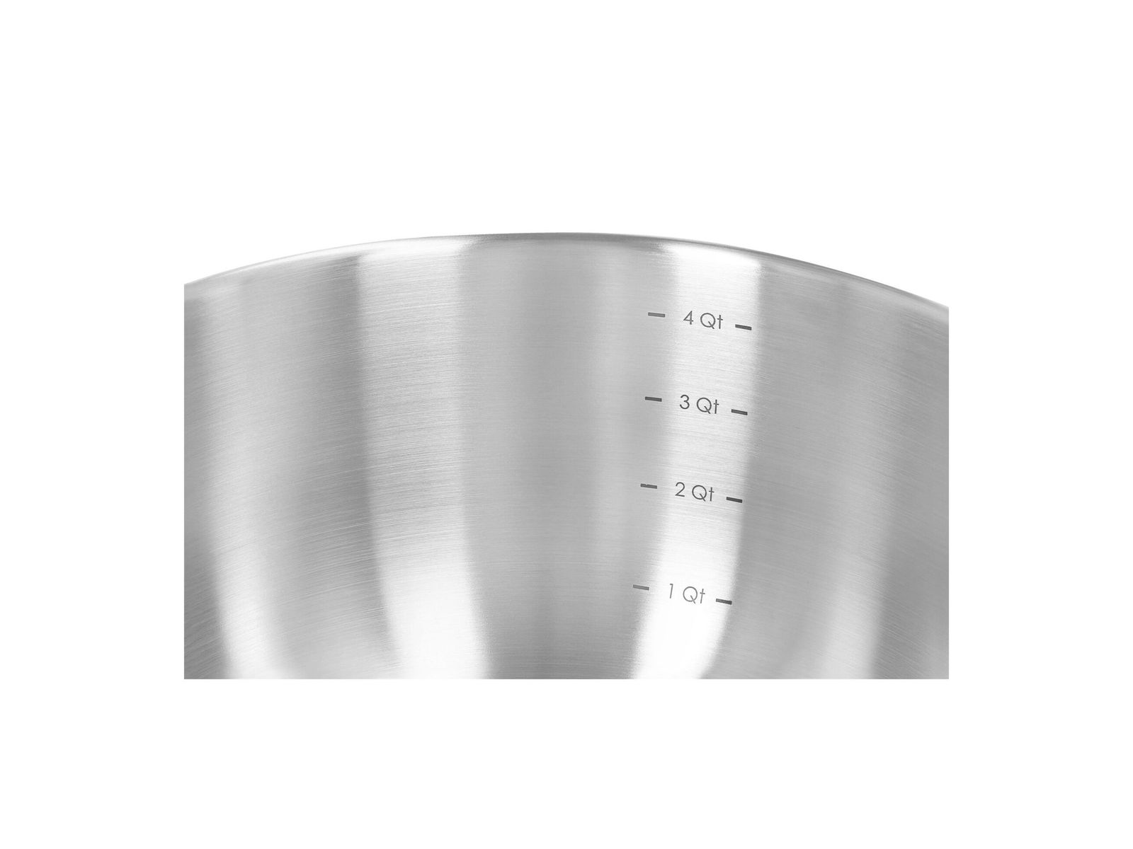 Pannenkoekenbeslag of slagroom maken, pizzadeeg voorbereiden, paneermeel en verse kruiden door gehakt kneden, fruitsalade bereiden, … een stevige en makkelijk te reinigen beslagkom komt dagelijks van pas. En twee is nóg handiger. Voor als de andere al in de koelkast staat met een mengsel dat moet opstijven bijvoorbeeld. Daarom presenteren we je met plezier dit degelijke duo van kwalitatief roestvrij staal met 2,5 en 4 liter inhoud (20 en 24 cm diameter). Ideale vormen om gemakkelijk mee te werken, onverslaanbaar in hun pure eenvoud. Bovendien passen ze mooi in elkaar zodat ze niet veel plaats innemen bij het opbergen.