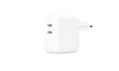 Of je nu thuis, op kantoor of onderweg bent, met deze lichtnetadapter van 35 W met twee USB?C-poorten laad je twee devices tegelijk op. Je kunt ’m het beste gebruiken met MacBook Air, maar hij is ook geschikt voor iPhone, iPad, Apple Watch en AirPods.