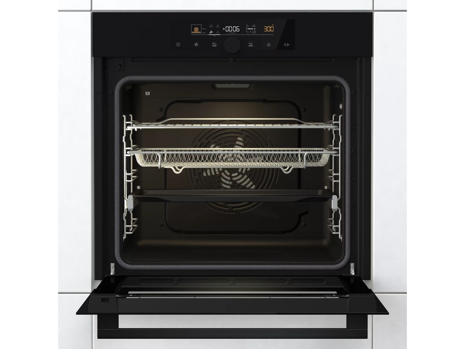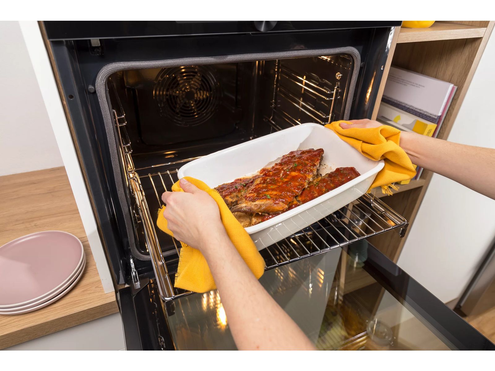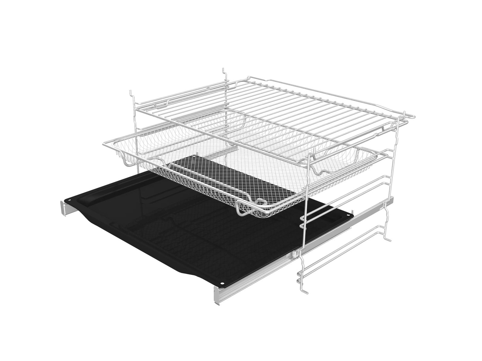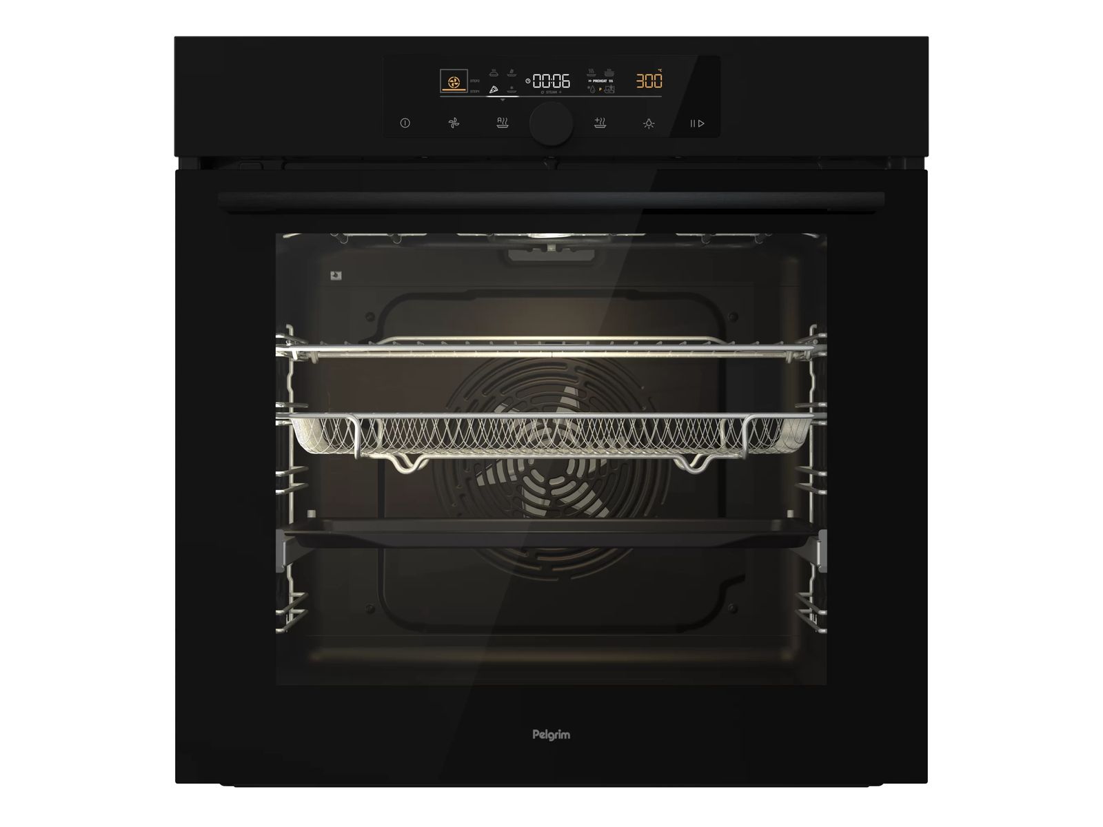 Deze oven is niet alleen een plaatje om te zien, het is ook nog eens de grootste oven van de markt. Met 77 liter inhoud kan je met gemak grote ovenschotels of een (kerst)kalkoen kwijt. De 5 insteekniveaus geven je flexibiliteit met bakken maar ook het gemak van bakken op verschillende niveaus tegelijk. Naast de 12 ovenfuncties heeft deze oven ook extra bakfuncties zoals GentleBake. Wil je nog meer inspiratie, dan zijn de 22 voorgeprogrammeerde recepten iets voor jou. Met behulp van dit kookboek maak je de lekkerste gerechten in een handomdraai. De oven is voorzien van een telescoopgeleider. Hierin kan je de bakplaat of grillplaat eenvoudig vastklikken zodat je hem veilig met één hand naar buiten kan schuiven zonder te kantelen. Bakken wordt nog leuker gemaakt dankzij de bijbehorende AirFry bakmand. Door het RVS gaas verspreidt de hete lucht zich namelijk nog effectiever waardoor tussentijds omdraaien van het gerecht niet meer nodig is. Mooi makkelijk van Pelgrim.