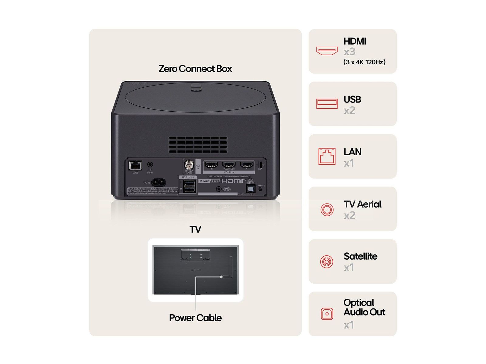 *Verbinding met stroomkabel naar zowel het tv-scherm als de Zero Connect Box vereist.