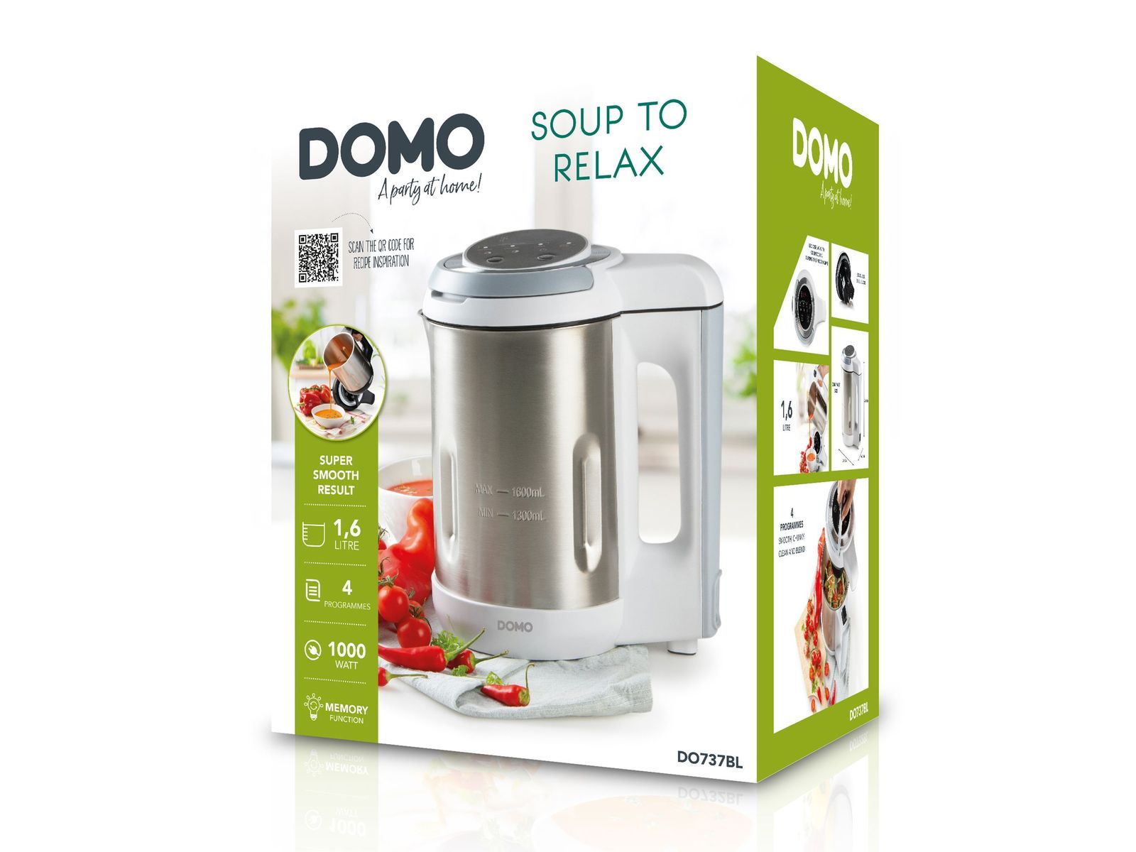 Een fantastisch lekkere kom soep maken hoeft niet seizoensgebonden te zijn, en dankzij de DOMO Soepmaker DO737BL hoeft dit ook niet lang te duren! Met een capaciteit van 1,6 L maak je een portie soep voor het hele gezin. Dankzij de programma’s geniet je zowel van ‘smooth’ als van ‘chunky’ bereide soep. Bovendien kan de soepmaker ook gebruikt worden als blender en reinig je het toestel heel makkelijk met de clean-functie. De ingebouwde timer, display en overloopsensor begeleiden je doorheen het hele proces zodat jij je enkel moet bezighouden met het kiezen van de lekkerste, verste ingrediënten.