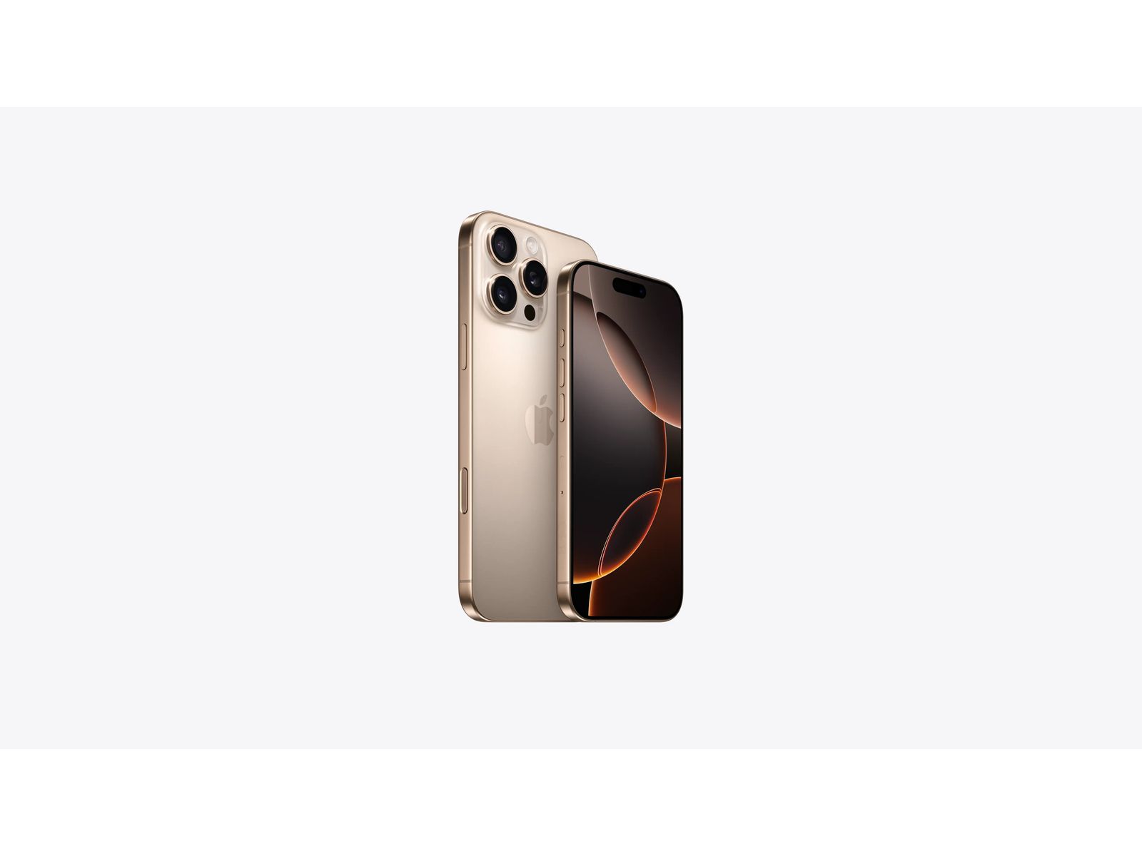 iPhone 16 Pro is gemaakt van Grade 5-titanium met een nieuwe microgestraalde afwerking. Titanium staat bekend om de geweldige verhouding tussen gewicht en stevigheid. Dat maakt deze modellen ongelofelijk sterk en uitzonderlijk licht. iPhone 16 Pro is verkrijgbaar in vier prachtige kleuren, waaronder het nieuwe desert titanium.