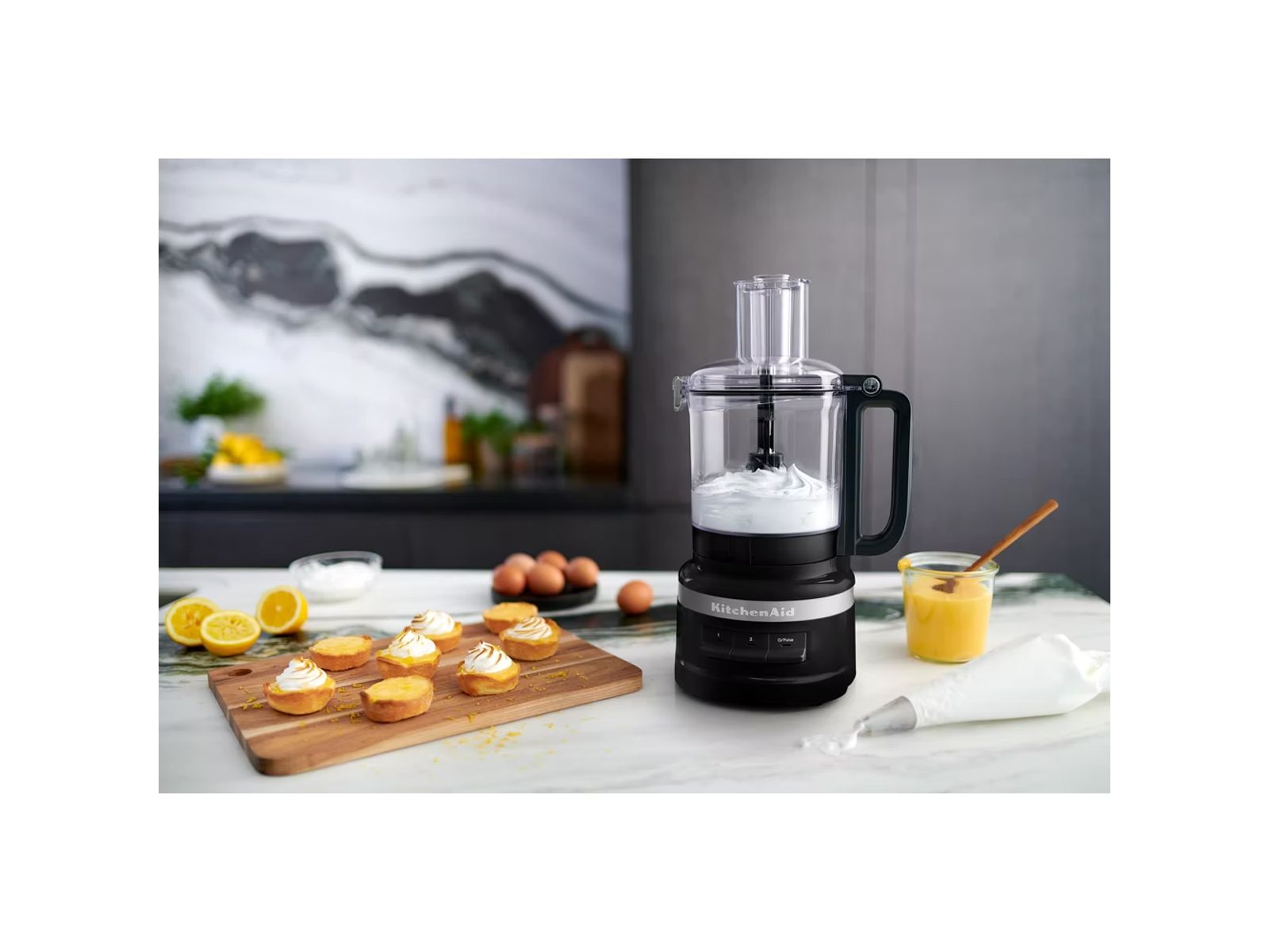 Deze foodprocessor is weliswaar compacter dan andere KitchenAid producten, maar hij bevat talloze accessoires waardoor je nog veel meer kunt dan alleen hakken en snijden. Van overheerlijke guacamole tot het perfecte taartje: deze foodprocessor heeft de capaciteit en kracht om je keukenexperimenten tot een succes te maken.