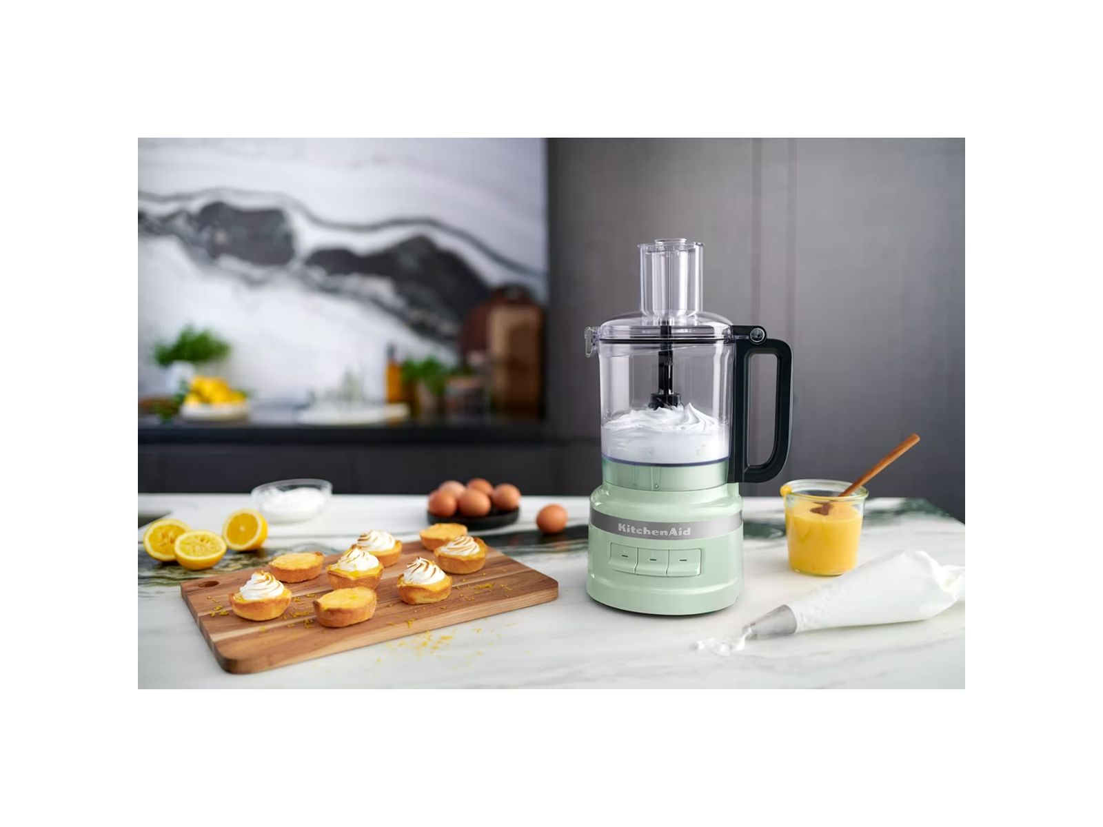 Deze foodprocessor is weliswaar compacter dan andere KitchenAid producten, maar hij bevat talloze accessoires waardoor je nog veel meer kunt dan alleen hakken en snijden. Van overheerlijke guacamole tot het perfecte taartje: deze foodprocessor heeft de capaciteit en kracht om je keukenexperimenten tot een succes te maken.