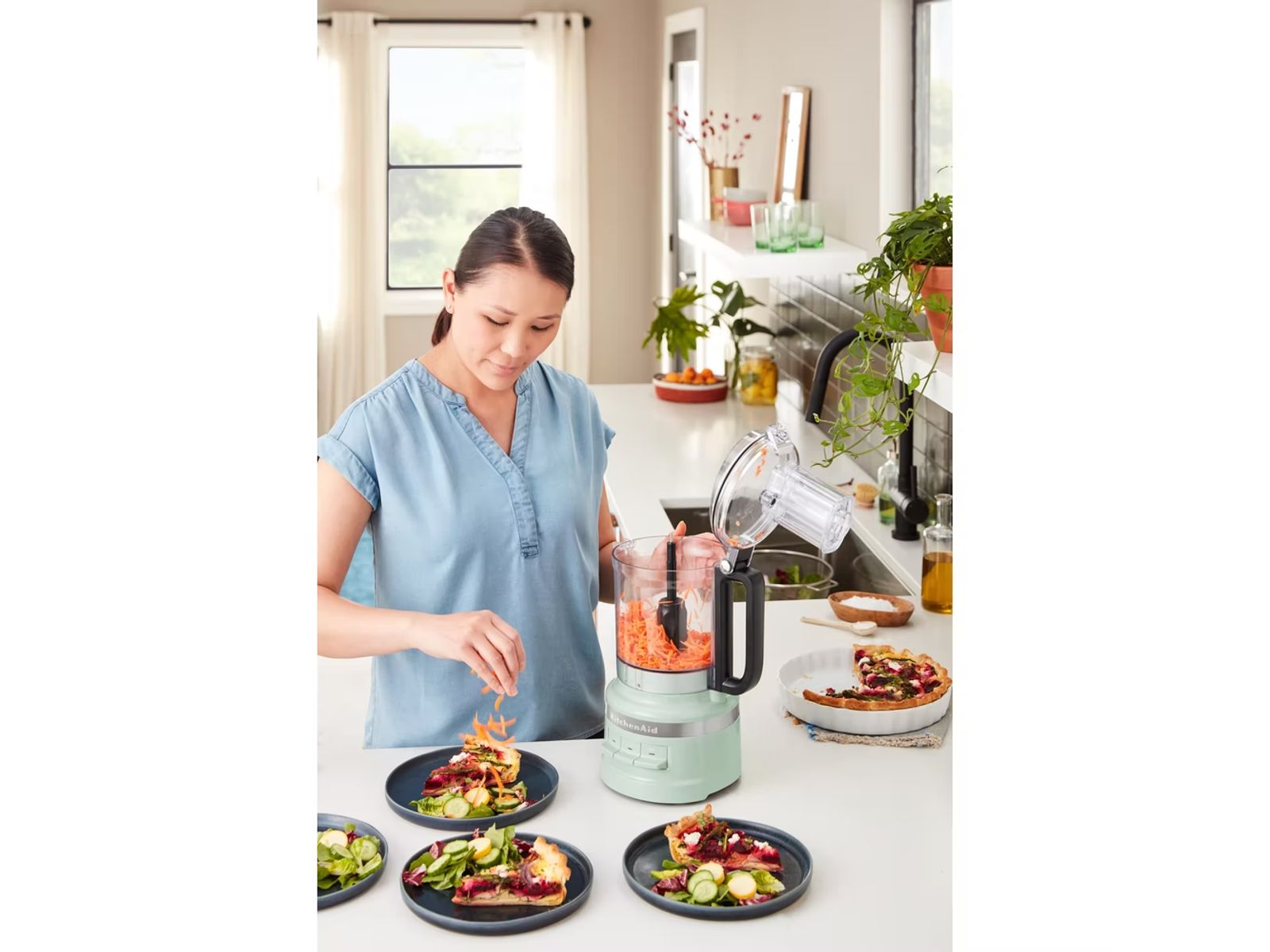 Ga voor de wow-factor met de foodprocessor die je helpt om je maaltijden naar een hoger niveau te tillen. En omdat het KitchenAid is, heeft hij ook een prachtig en ergonomisch design en is hij eenvoudig in gebruik. Snijd kruiden fijn, snijd tomaten in plakjes, meng een pastasaus, kneed brooddeeg, schaaf chocolade of maak een gratin.