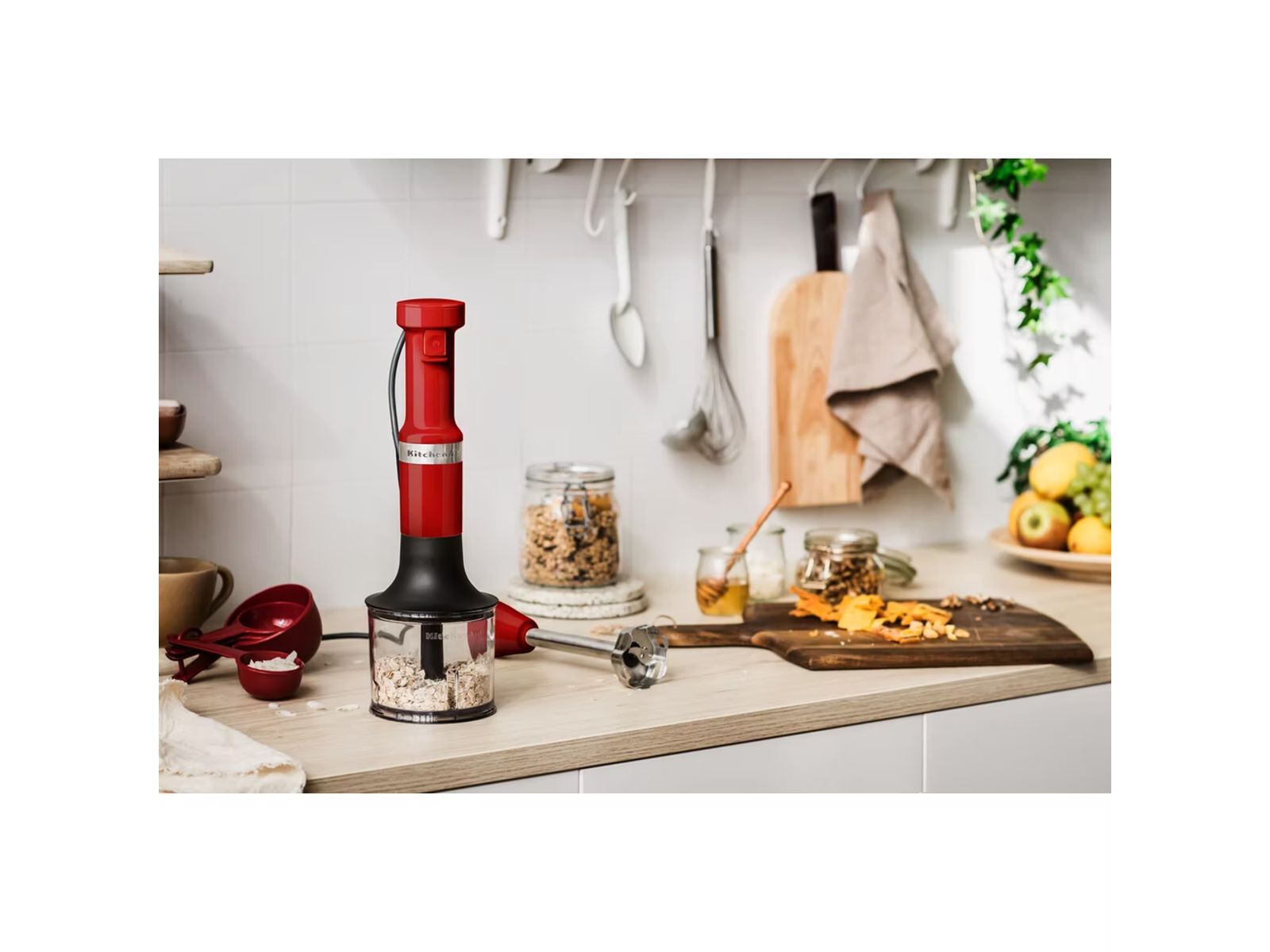 Of je nu verse pesto maakt of uien, knoflook of tomaten hakt: een minifoodprocessor is er ideaal voor. Je kan al deze taken nu met de handblender uitvoeren, die in een hakmolen transformeert door de voet op het bijgevoegde hakmolenhulpstuk te plaatsen.