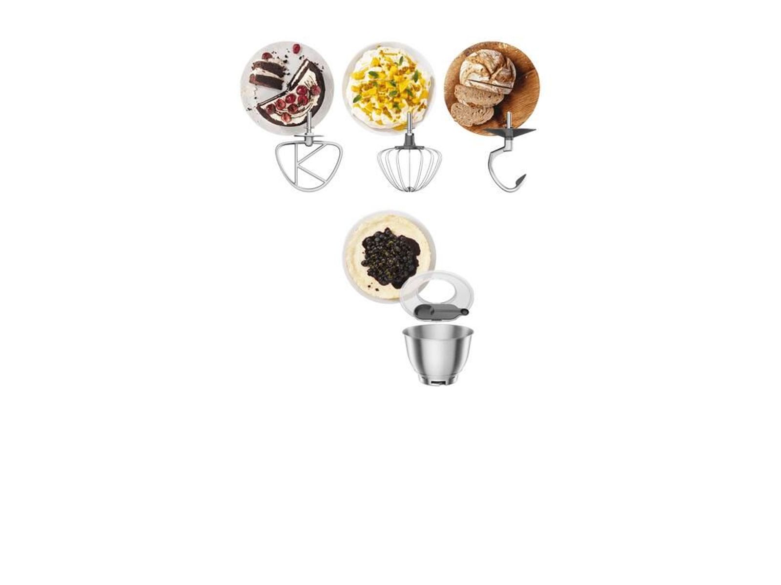 ELKE KEER HEERLIJKE RESULTATENPak elke taak aan met drie in hoogte verstelbare metalen mengkom-accessoires - allemaal getest en eenvoudig met de hand te wassen