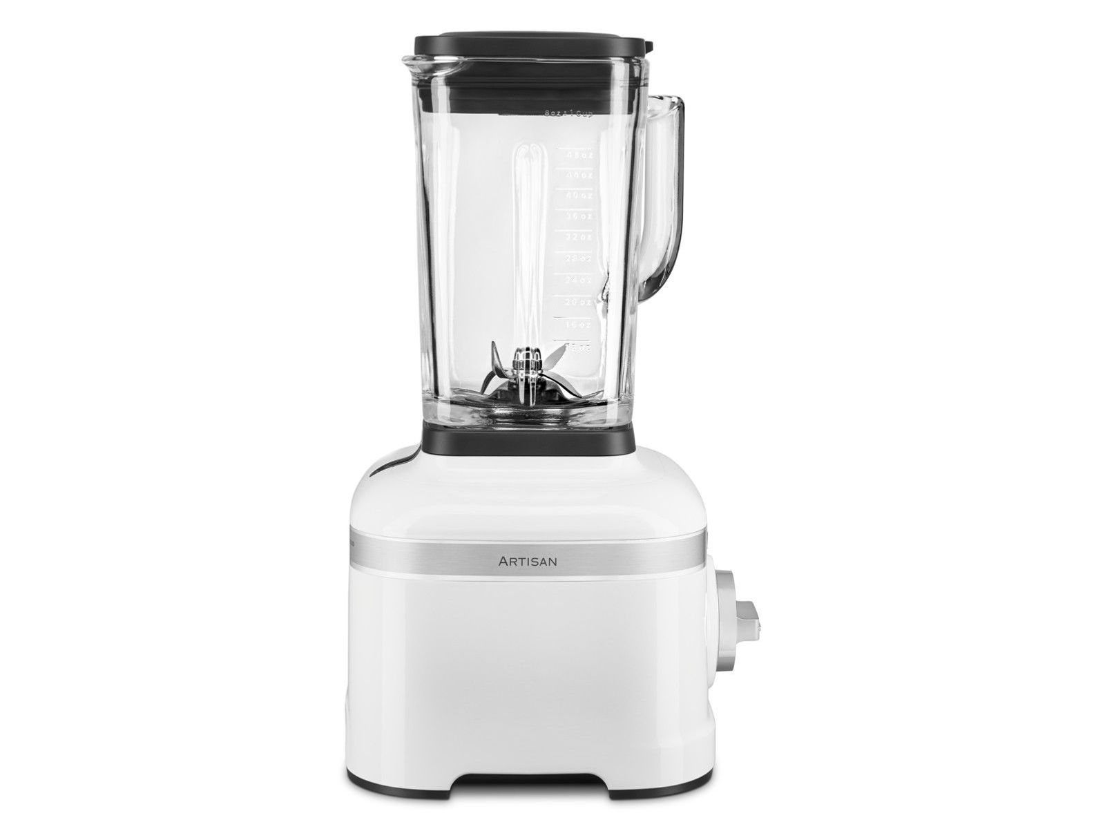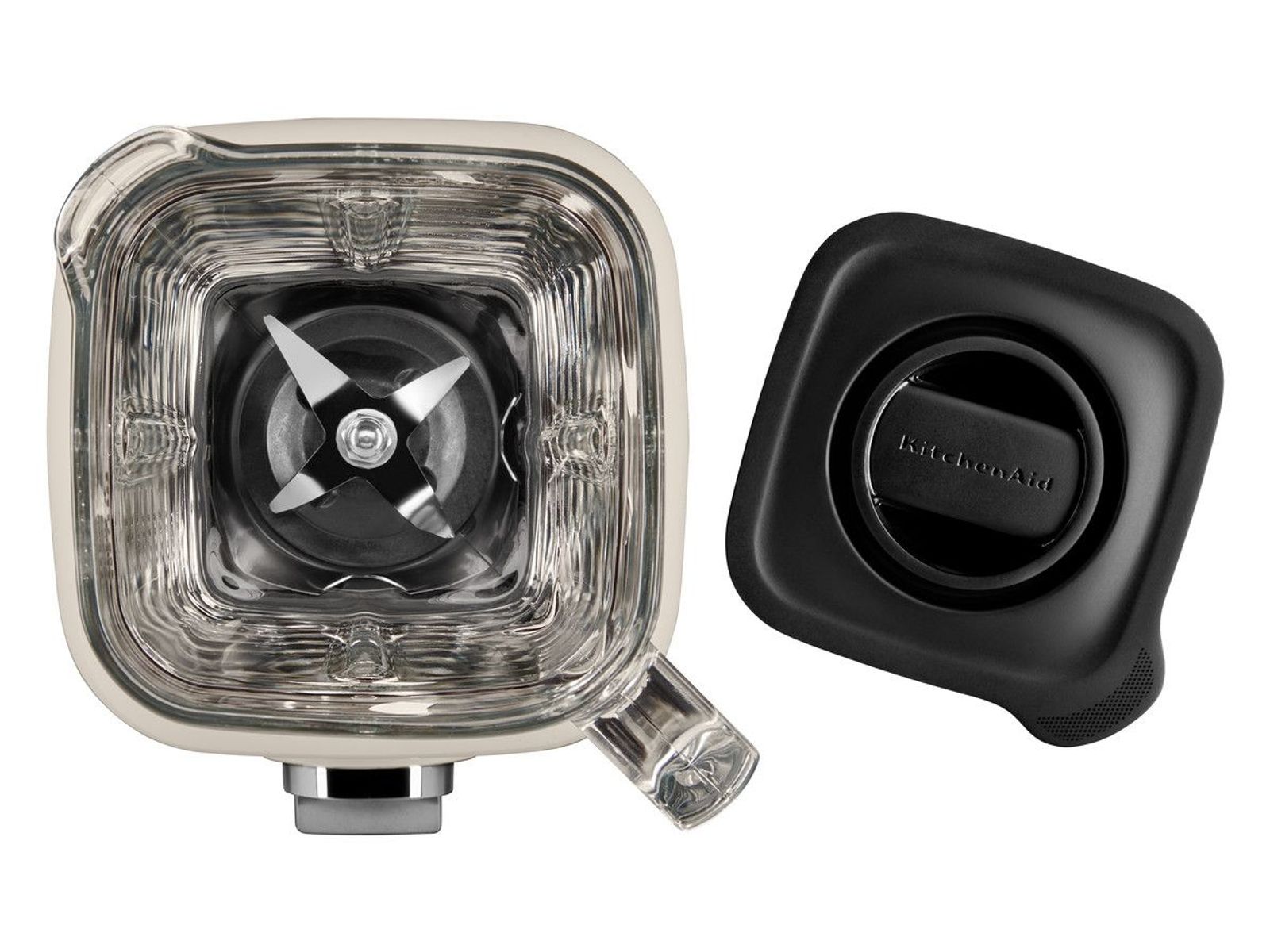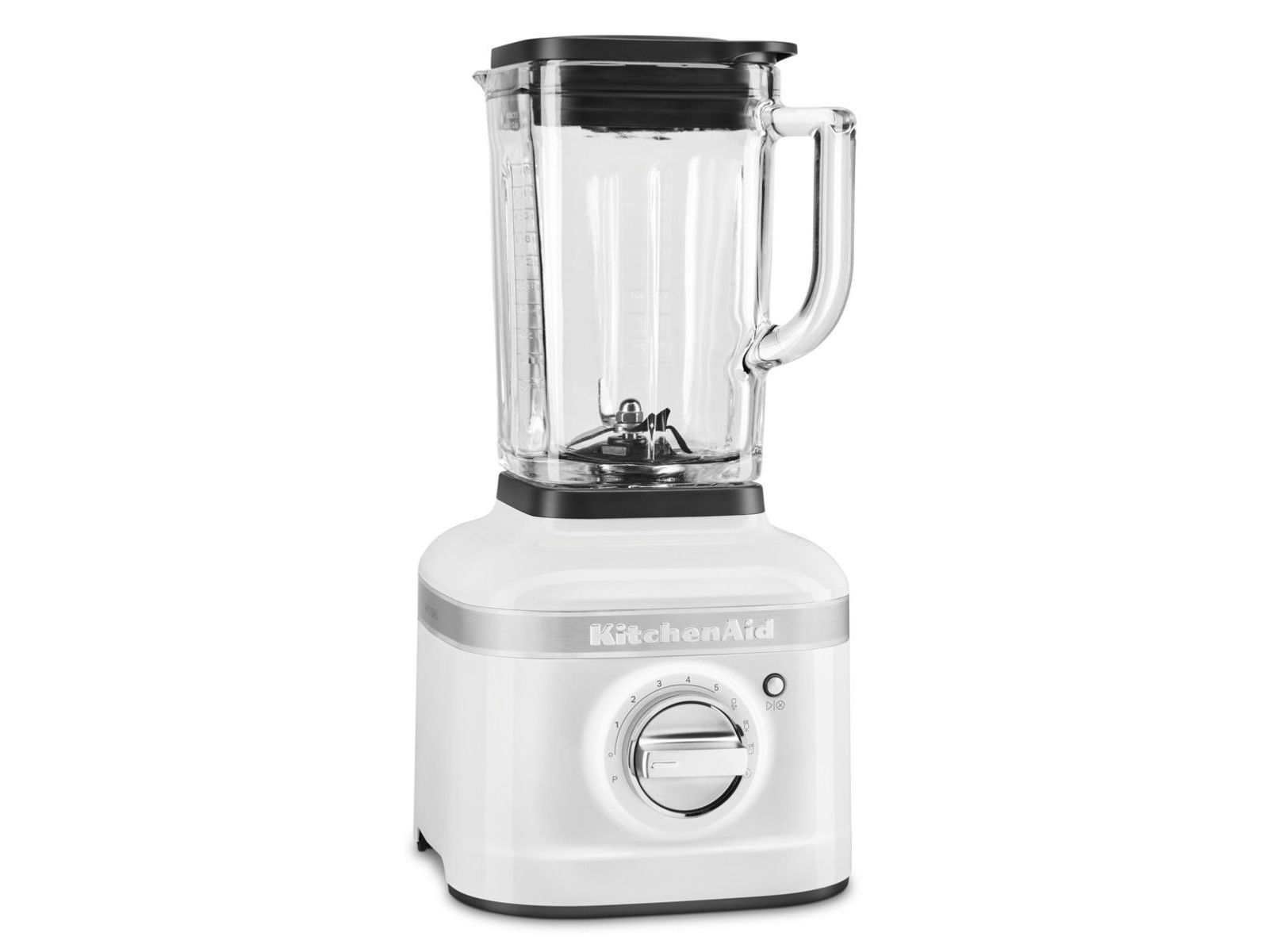 Hoogwaardig driedelig blendsysteem van KitchenAid: motor met piekvermogen van 1,5 pk (met Intelli-Speed), uniek asymmetrisch mes en geribbelde mengbeker