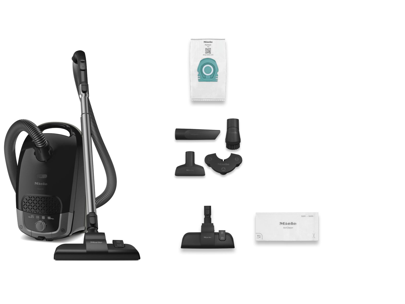 Stofzuiger ; Obsidian black ; Guard S1 ; 890 W ; AirClean ; Telescopische buis ; Met Stofzak ;