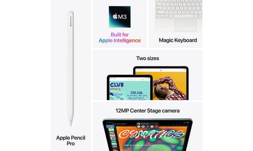 • Apple Pencil Pro voor next-level creativiteit. En Magic Keyboard, nu met een rij met 14 functietoetsen en een grotere trackpad.