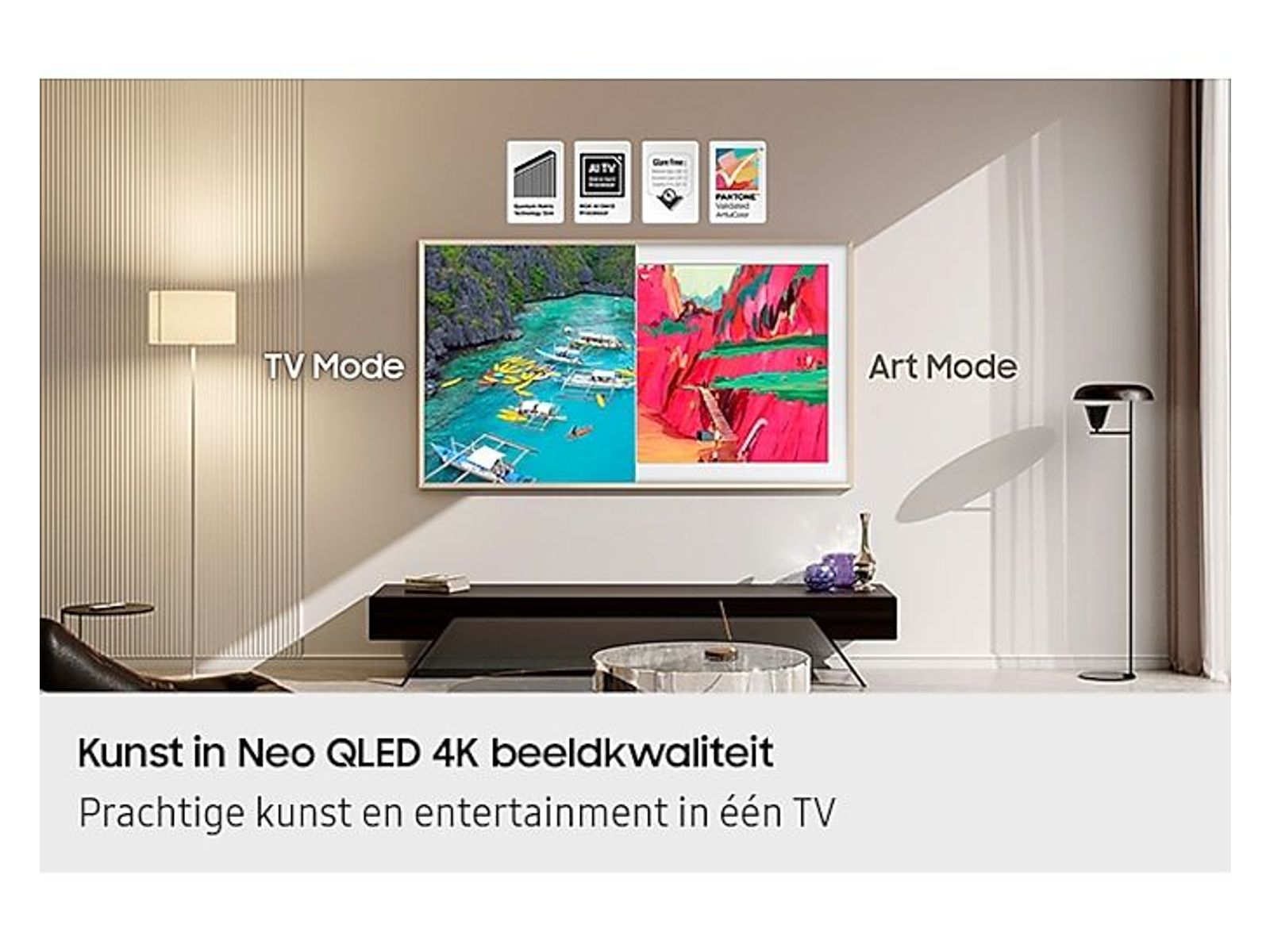 Je kunt The Frame eenvoudig afstemmen op de rest van je interieur. Dankzij de in hoogte verstelbare TV-standaard kun je genoeg ruimte overlaten voor een Soundbar en andere apparaten.