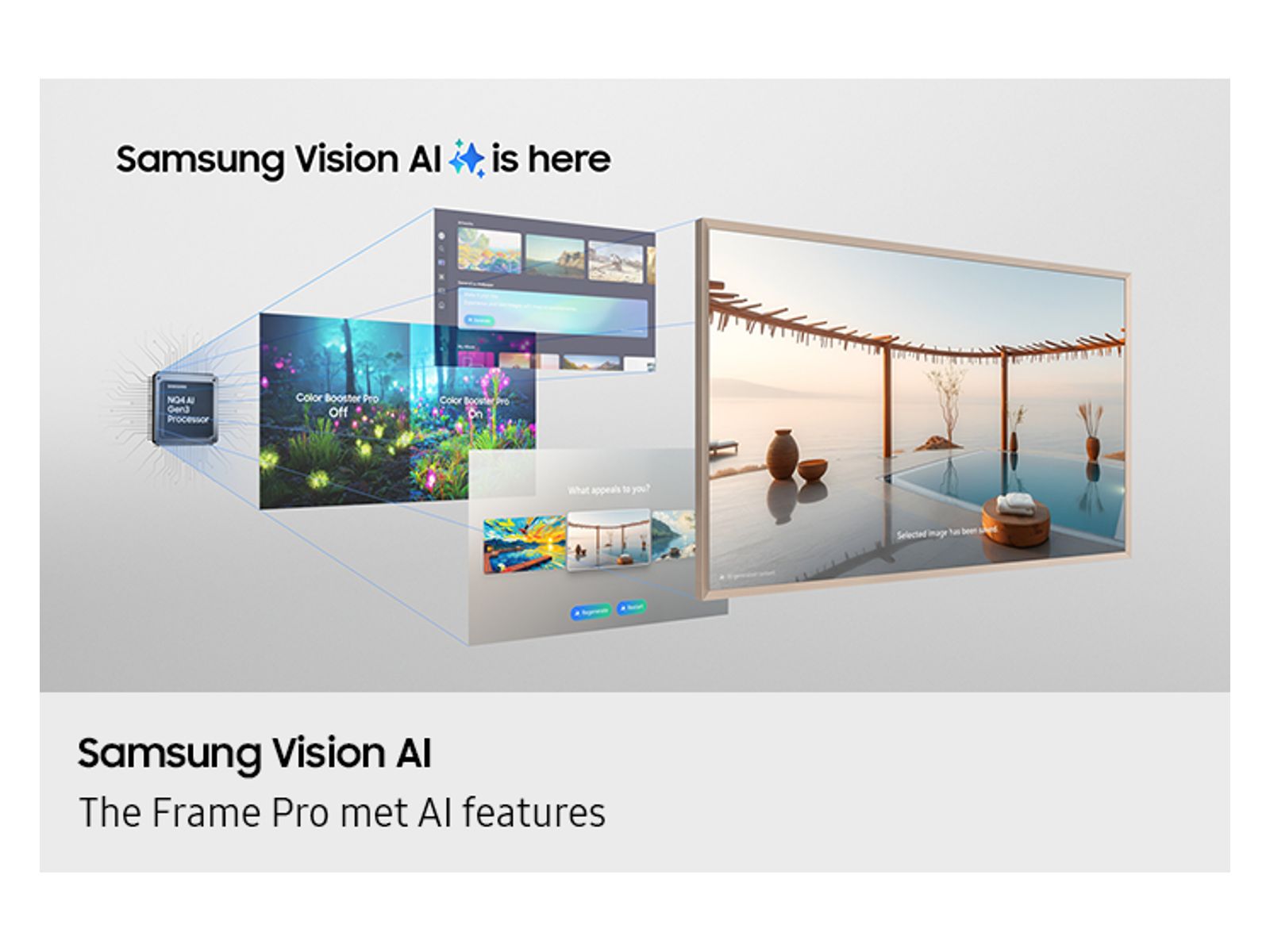 The Frame Pro heeft een strak, minimalistisch ontwerp en is een kunstwerk op zich. Je kunt hem ook draadloos verbinden met andere apparaten. Je kunt je opstelling dus naar hartenlust aanpassen.