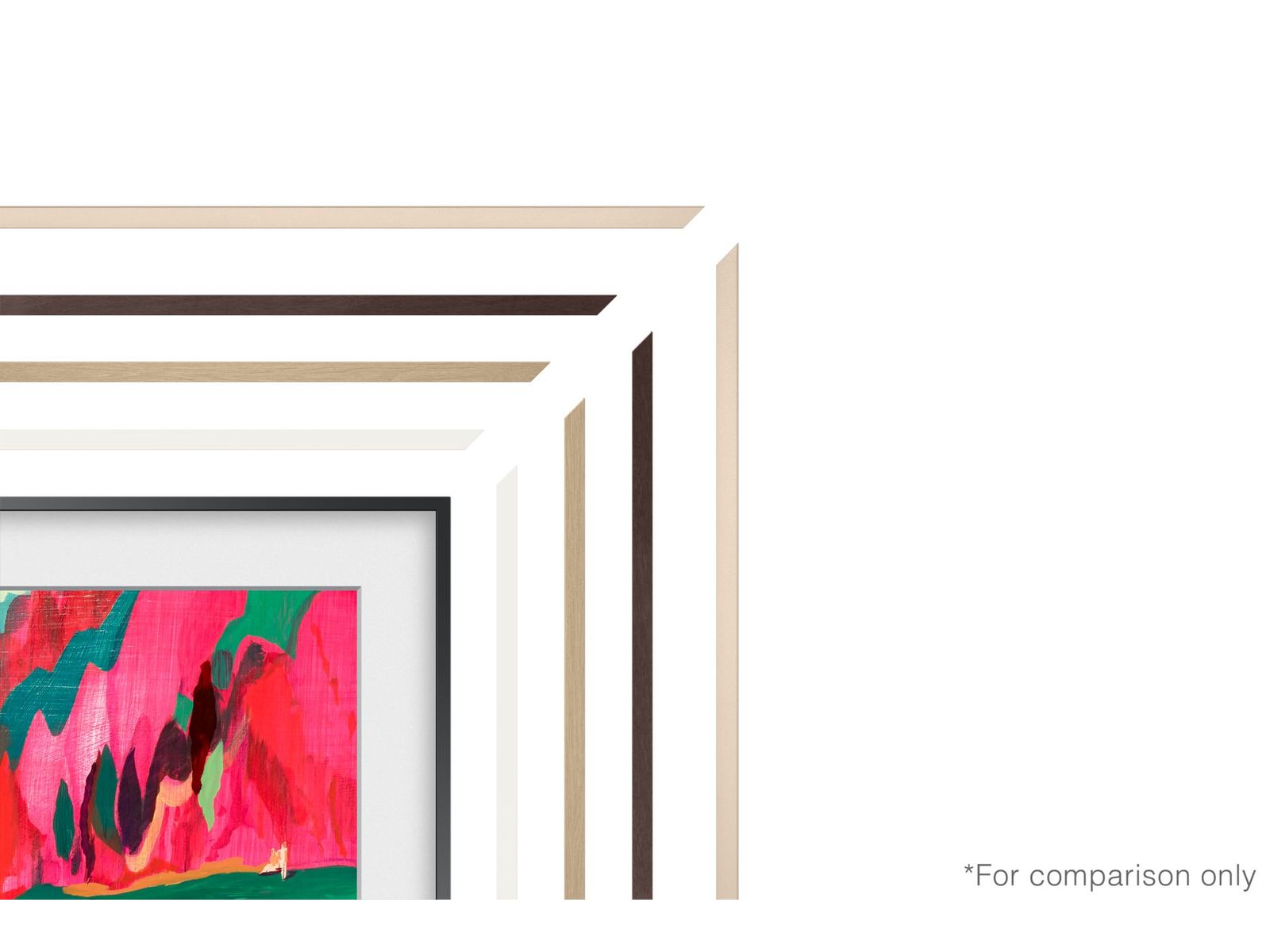 Verander het ontwerp in een handomdraai met de verwisselbare lijst.Bij The Frame hebt u de keuze. Geniet van een selectie elegante lijsten die verkrijgbaar zijn in verschillende kleuren: walnoot, teak, wit en goud.Kies de ideale lijst die past bij uw interieur, uw smaak of het gekozen kunstwerk. Dankzij de eenvoudige en snelle magnetische bevestiging kunt u de lijst verwisselen wanneer u maar wilt*.* TV niet inbegrepen.* Elke verwisselbare lijst wordt apart verkocht.