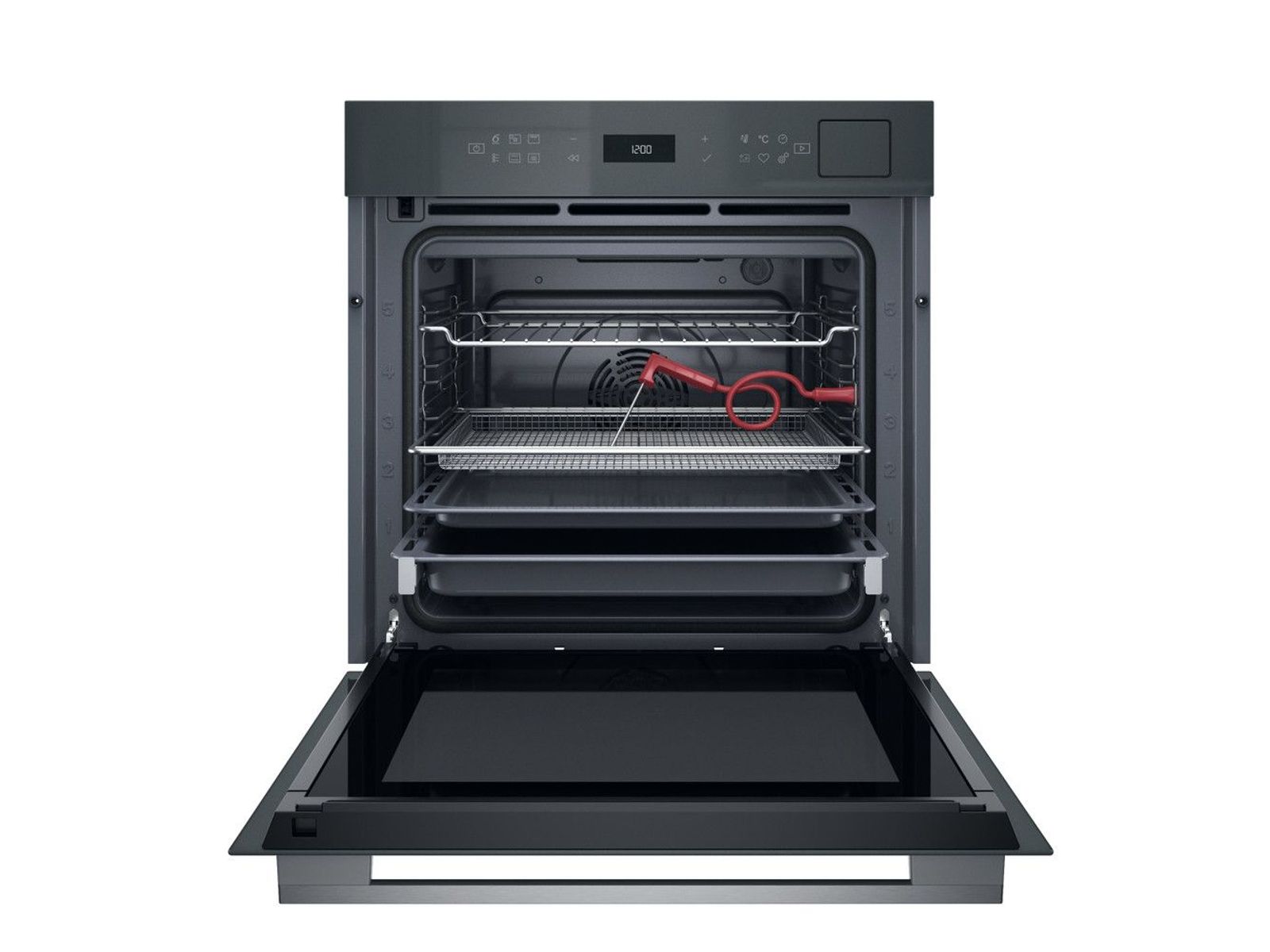 Krijg je de oven maar niet proper? Schakel de zelfreinigingsfunctie in! De binnenkant van de pyrolytische oven bereikt een extreem hoge temperatuur, waarbij alle voedselresten worden omgezet in as. Die veeg je daarna makkelijk weg met een vochtige spons.