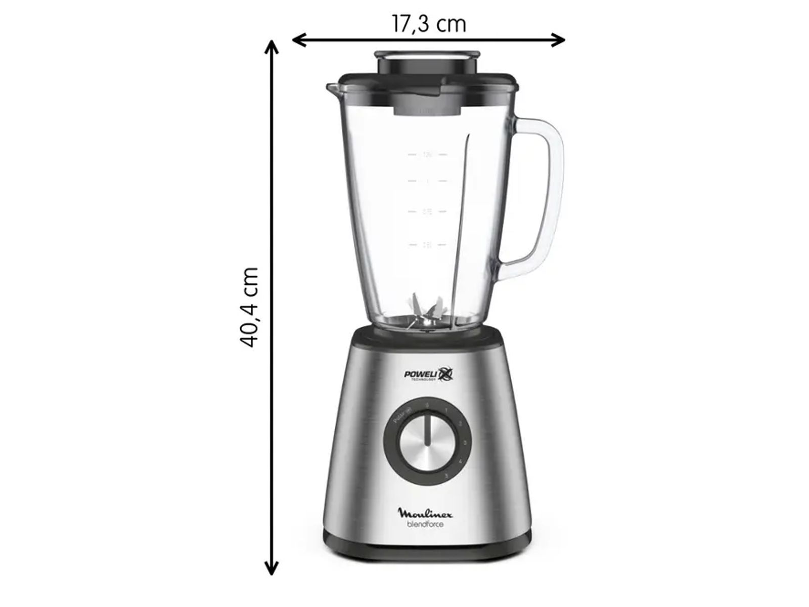 Of het nu gaat om ijsdrankjes, soep, dips of meer, met de Blendforce 2 blender van Moulinex hebt u alles volledig onder controle en bekomt u telkens weer dat perfect op maat afgestemd resultaat! Deze blender is uitgerust met 6 messen, die voorzien zijn van Powelix-technologie en 3 gecombineerde acties, en biedt vijf snelheden, evenals een pulsfunctie, voor krachtige prestaties die tot 30% sneller zijn! Kenmerkend voor deze blender is de uitstekende functionaliteit, maar ook de prachtige vormgeving uit premium roestvrij staal die in elke keuken goed tot zijn recht komt. Daarnaast biedt de grote schokbestendige kan in hittebestendig glas de ideale oplossing voor zowel warme als koude dranken. De Blendforce 2 is een perfecte blender voor shakes, smoothies en ijsdranken, en is voorzien van een speciale ice crush-functie die het malen van ijs moeiteloos maakt! Het geheel wordt afgerond met een luchtkoelsysteem en een stabiele basis met zuignappen voor totale gemoedsrust.