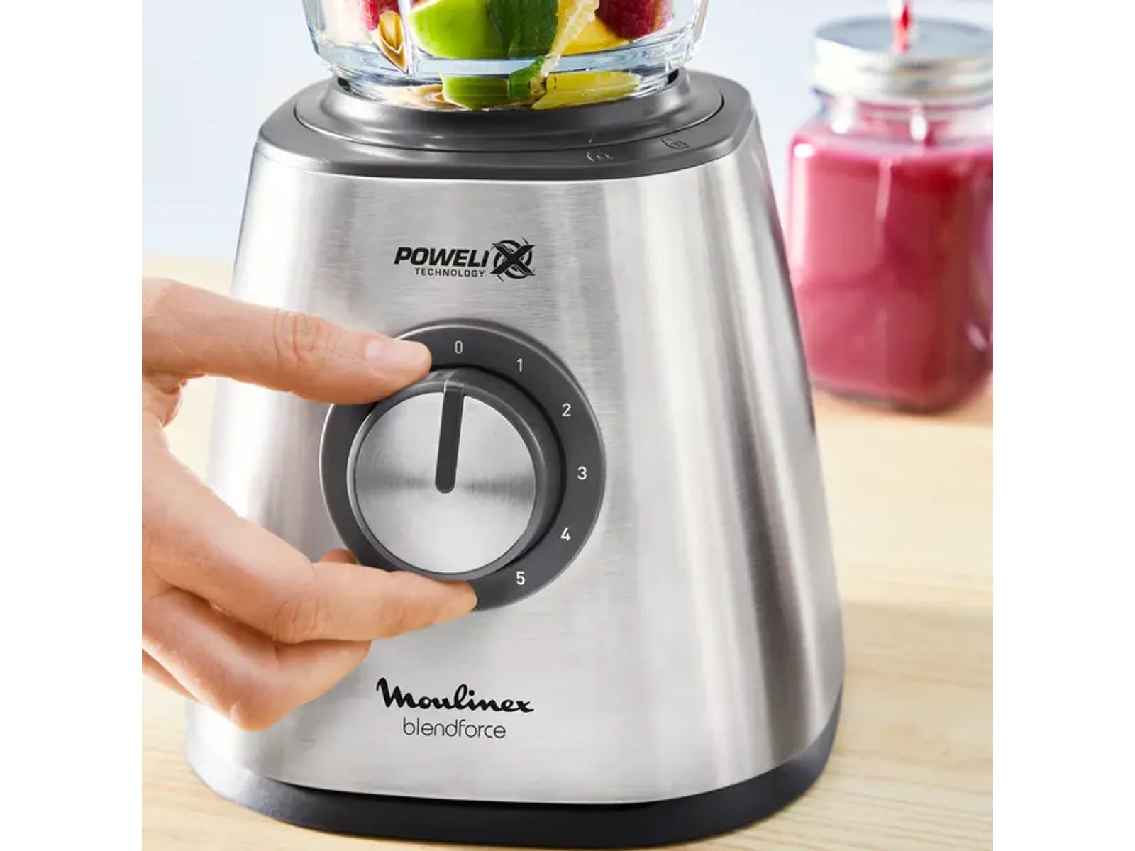 Moulinex BlendForce, Perfecte controle voor een perfecte textuur elke keer. Ultra gladde mix met 5 snelheden + een Pulse-functie aangedreven door 800 W vermogen.