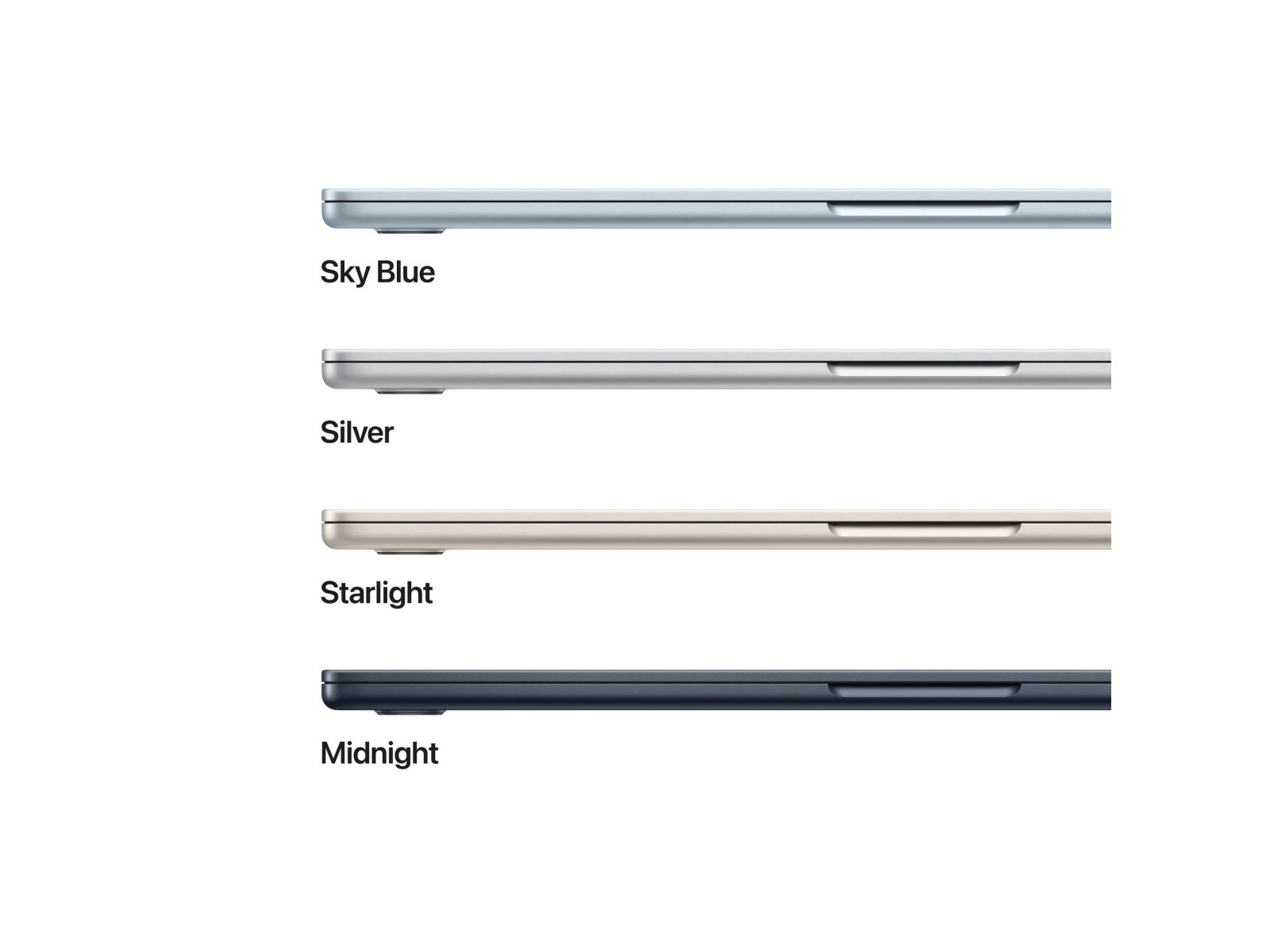 Met vier prachtige kleuren, waaronder het nieuwe hemelsblauw, is iedereen in de wolken. En bij elke MacBook Air zit een MagSafe-oplaadkabel in de bijpassende kleur.