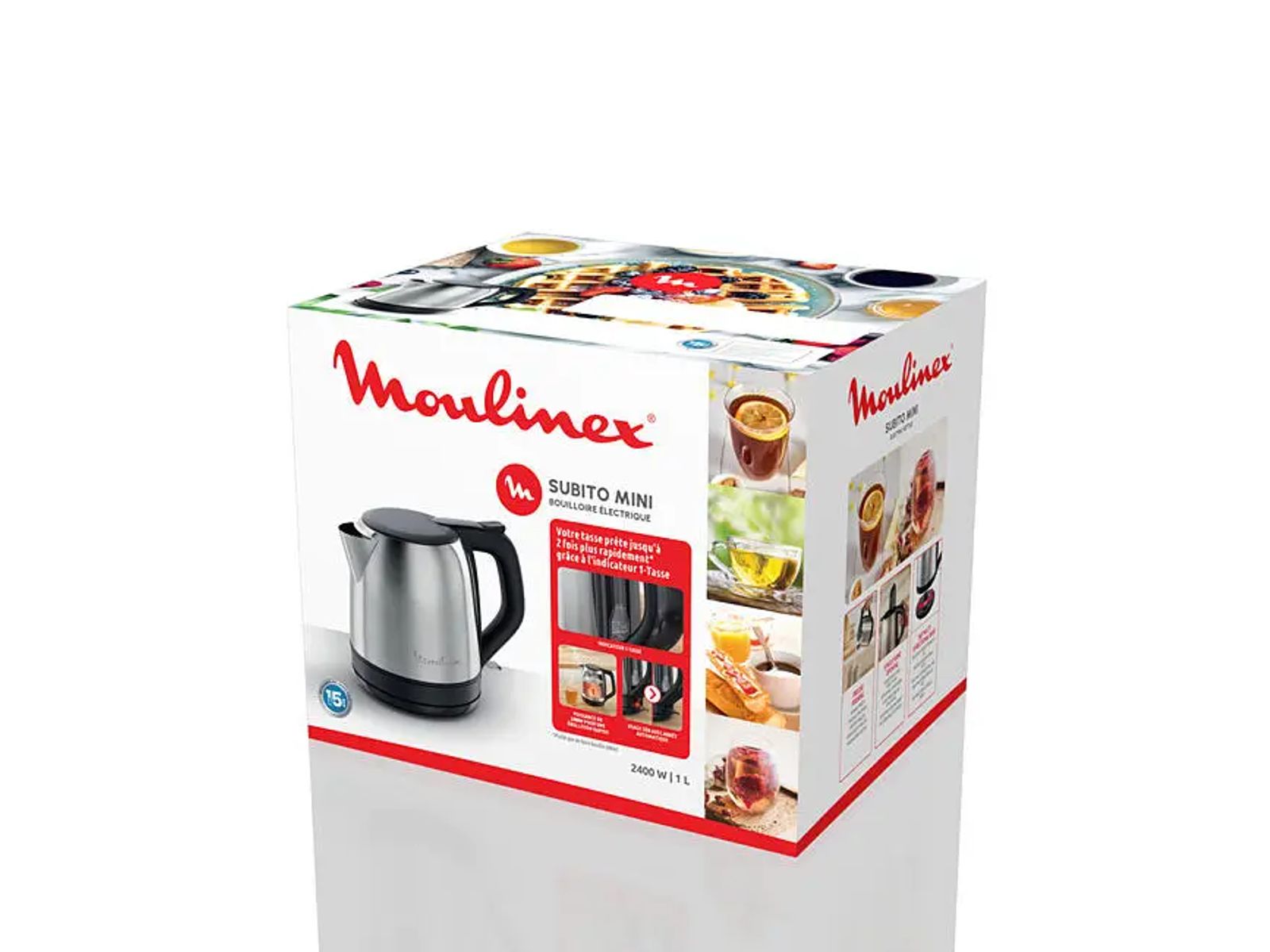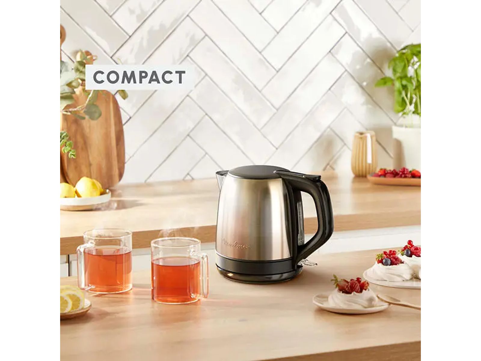 Ontdek de Subito Mini van Moulinex, de elegante, compacte waterkoker die perfect in elke keuken past. Deze compacte waterkoker van roestvrij staal (1 liter) biedt volledige veiligheid dankzij de automatische uitschakelfunctie en droogkookbeveiliging. Hij is bovendien eenvoudig te gebruiken dankzij de met één hand te openen, het eenvoudig te reinigen, verwijderbare filter en nog veel meer.