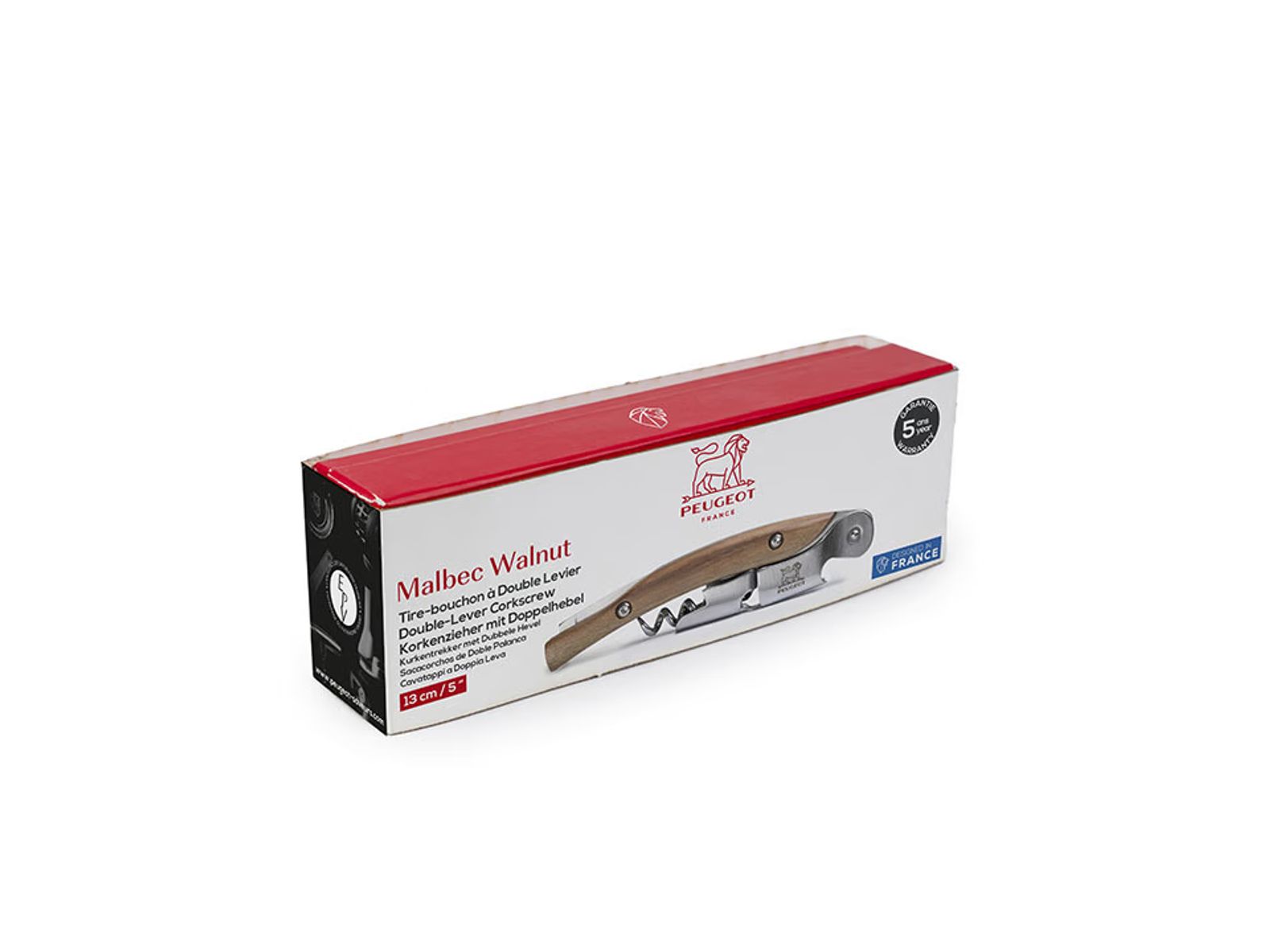 Door esthetiek, efficiëntie en duurzaamheid te combineren, is deze Malbec Walnut sommelier kurkentrekker van Peugeot het onmisbare accessoire voor alle wijnliefhebbers. Het dubbele hefboommechanisme zorgt voor een geleidelijke extractie van de kurk, zonder inspanning en zonder risico op breken. Gemaakt van hoogwaardig roestvrij staal, biedt hij een uitstekende stevigheid en grote precisie tijdens het gebruik.