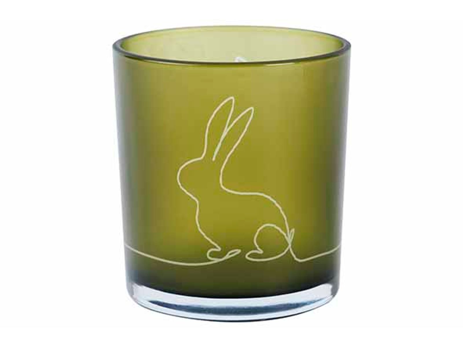 Theelichthouder Rabbit Groen D7xh8cm Gla S