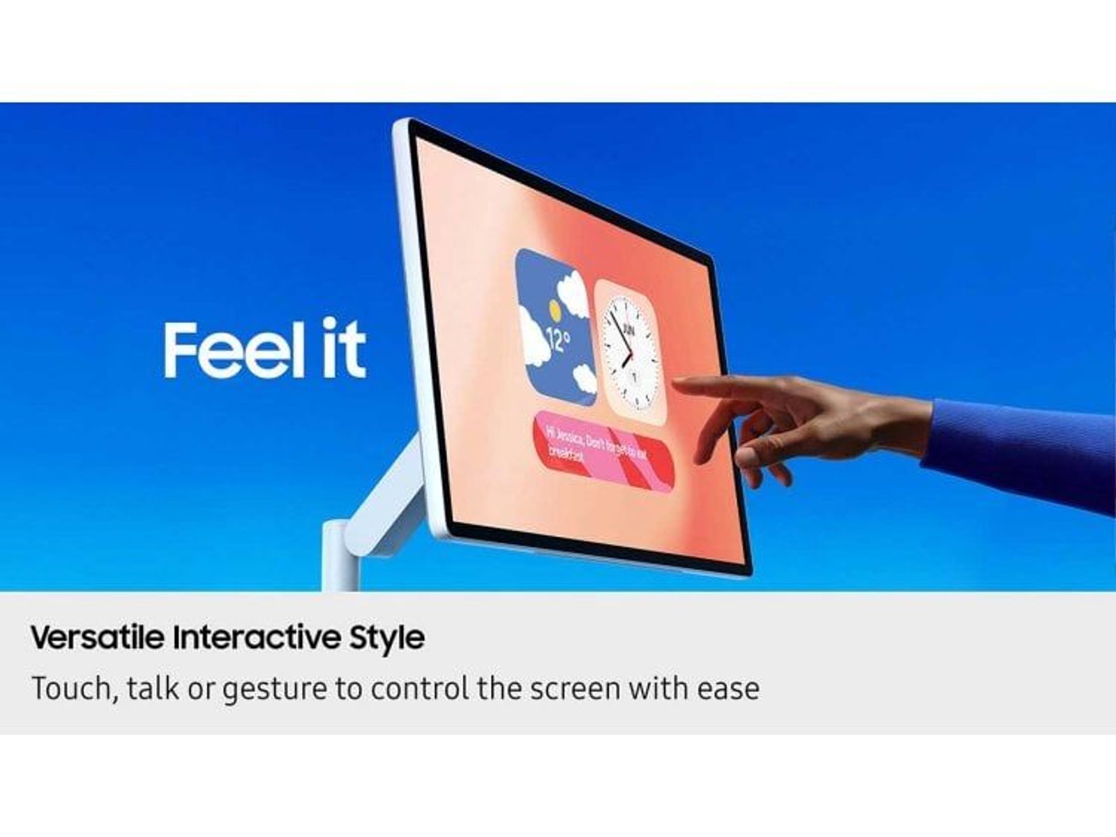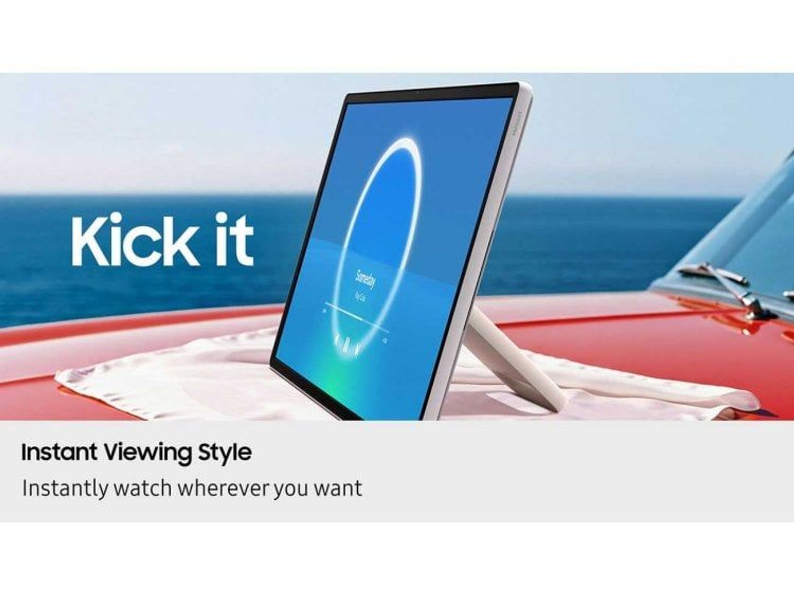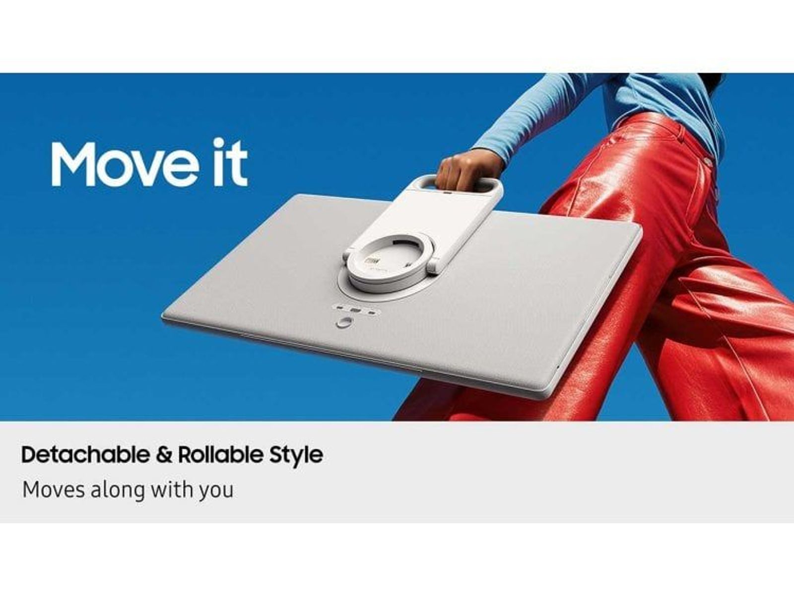 De Samsung Movingstyle, een extra grote tablet-monitorcombinatie die gemaakt is om te verplaatsen, is voorzien van een verrijdbare vloerstandaard die u overal in huis, op kantoor of op school kunt verplaatsen. En wanneer u hem mee wilt nemen, koppelt u het draagbare 27-inch touchscreen los en neemt u hem mee met behulp van de ingebouwde handgreep. De standaard van het scherm maakt het gemakkelijk om het op een tafel of op de vloer te zetten voor optimaal kijkgemak of interactie. Zo is de Samsung Movingstyle zo flexibel als u wilt, zonder dat het een kleine tablet of een aan de muur bevestigde tv is . In de unplugged-modus heeft dit scherm drie volle uren batterijduur.