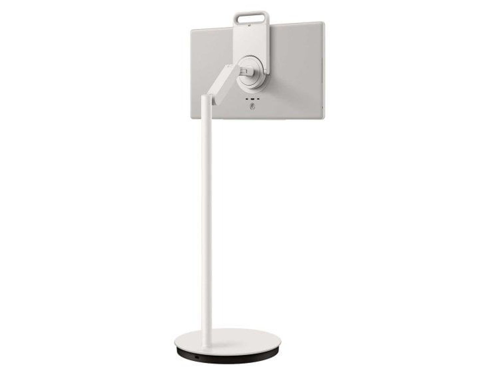 een ultradraagbare ervaring die elke plek transformeert tot een thuisentertainment- of werkplekopstelling. Rol hem van de ene kamer naar de andere met de vloerstandaard, met verborgen wielen voor een soepele mobiliteit. Als je op pad gaat, laat je de standaard 1 met één druk op de knop vallen en draag je hem aan de ingebouwde handgreep die verandert in een standaard.