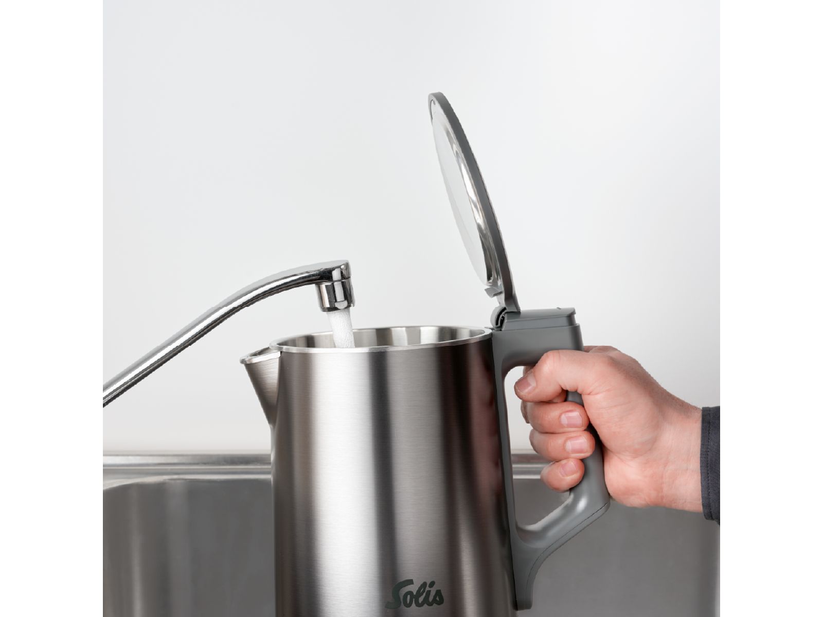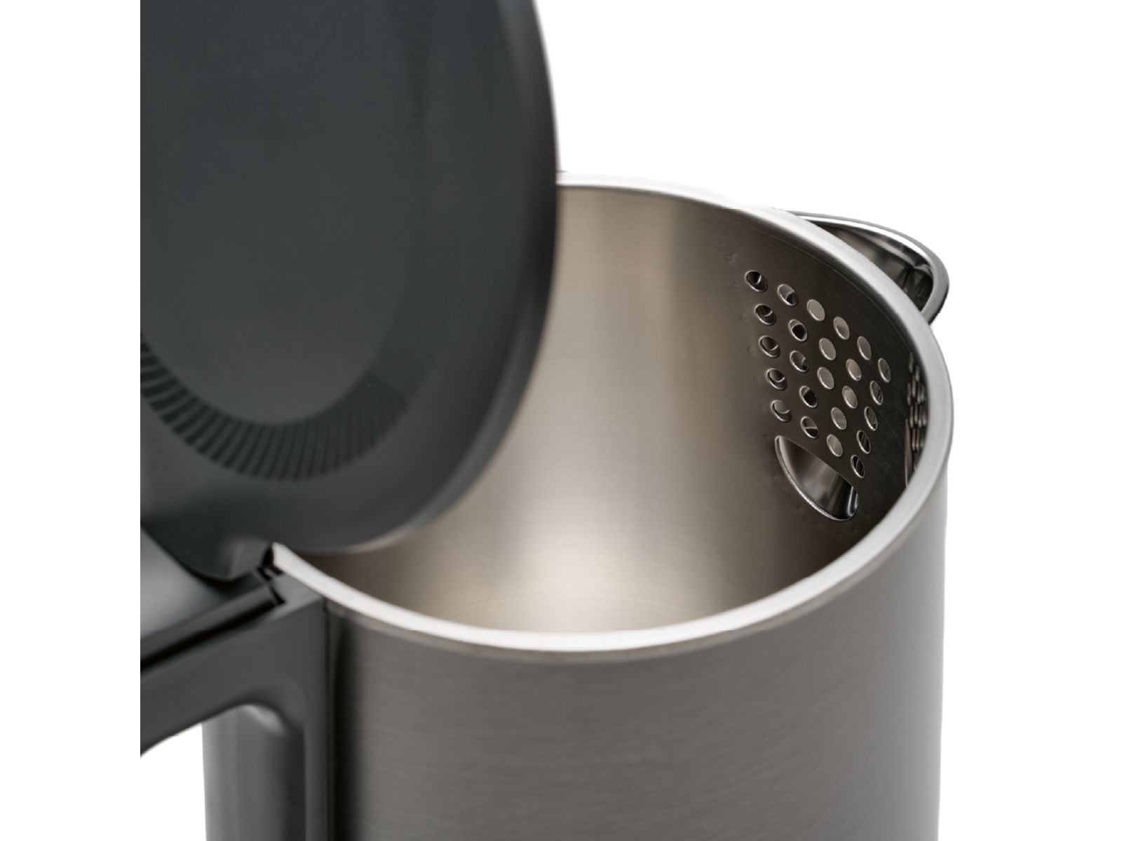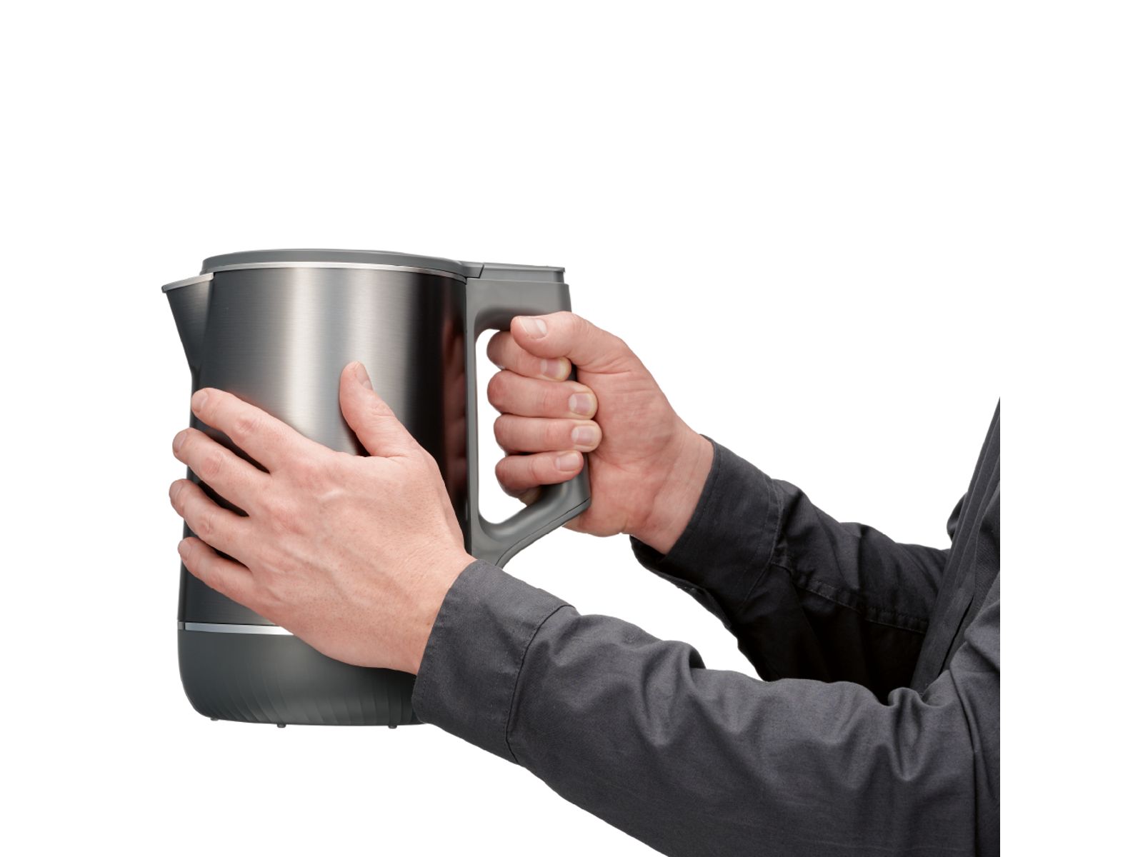 Geen risico op verbranding aan de kan dankzij de dubbelwandige metalen constructie.
