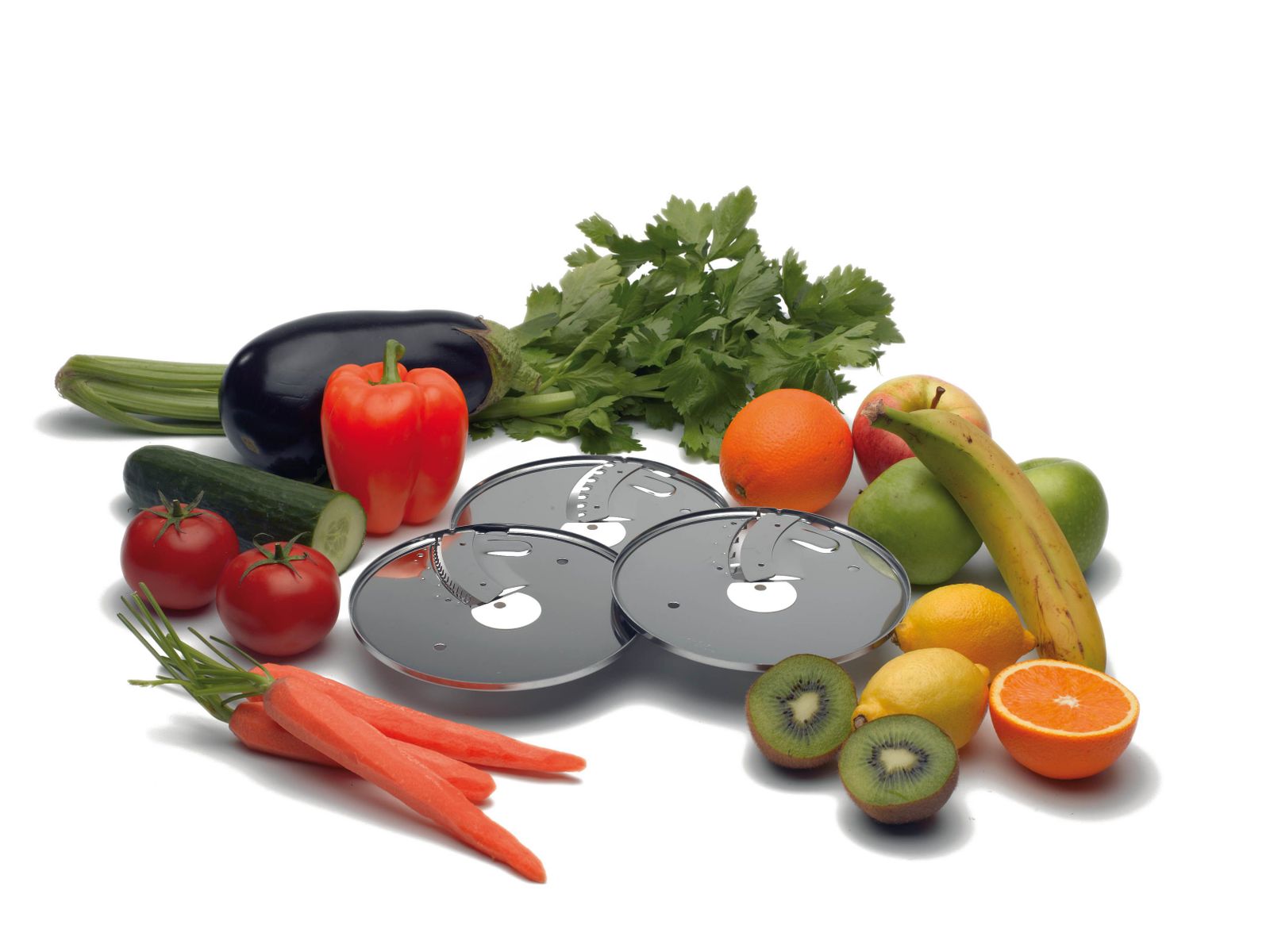 Set van 3 schijven om groenten te snijden op originele manieren, die een chefkok waardig zijn: gegolfde plakjes, reepjes en julienne, geschikt voor groenten en vruchten. Met handige opbergkoffer voor de schijfjes.